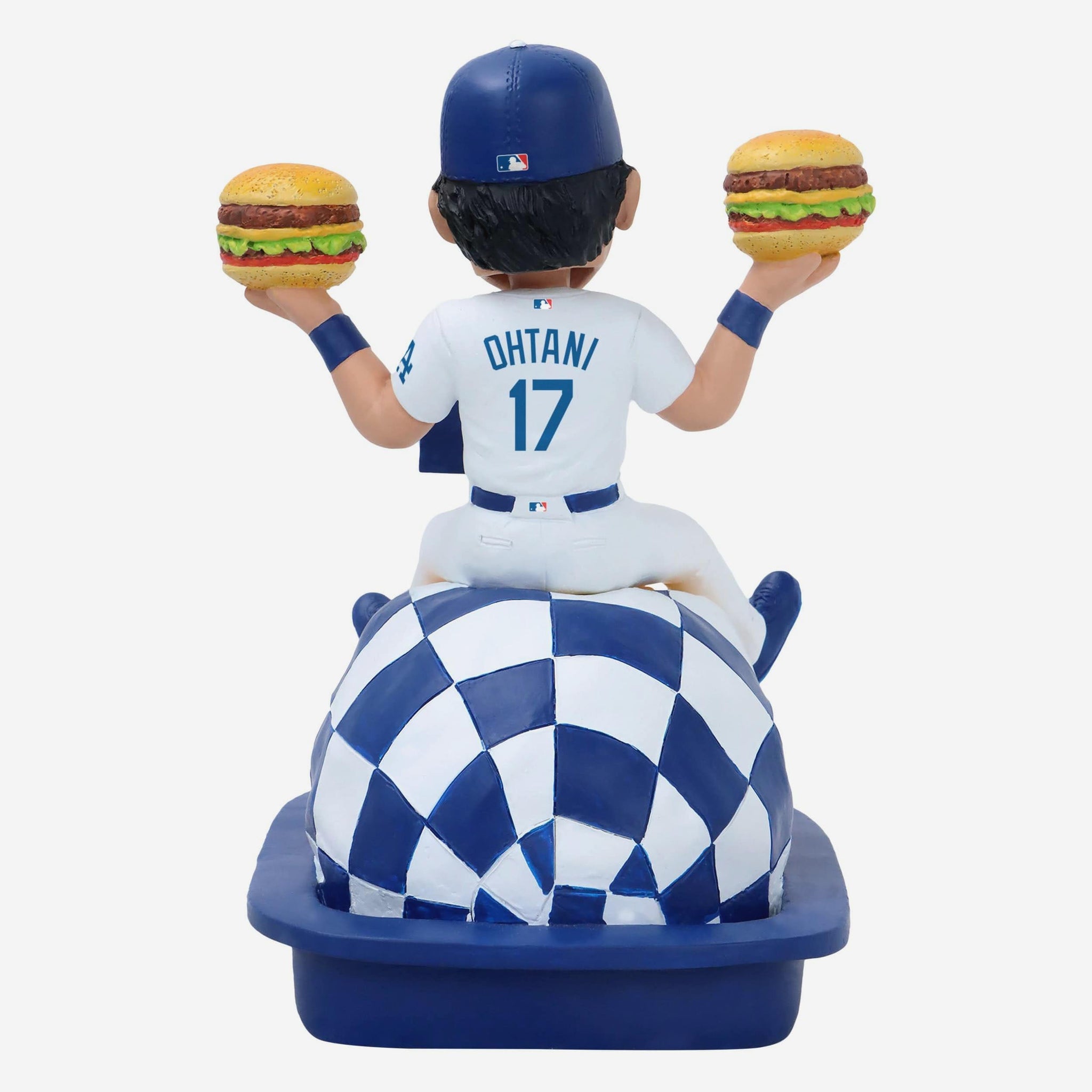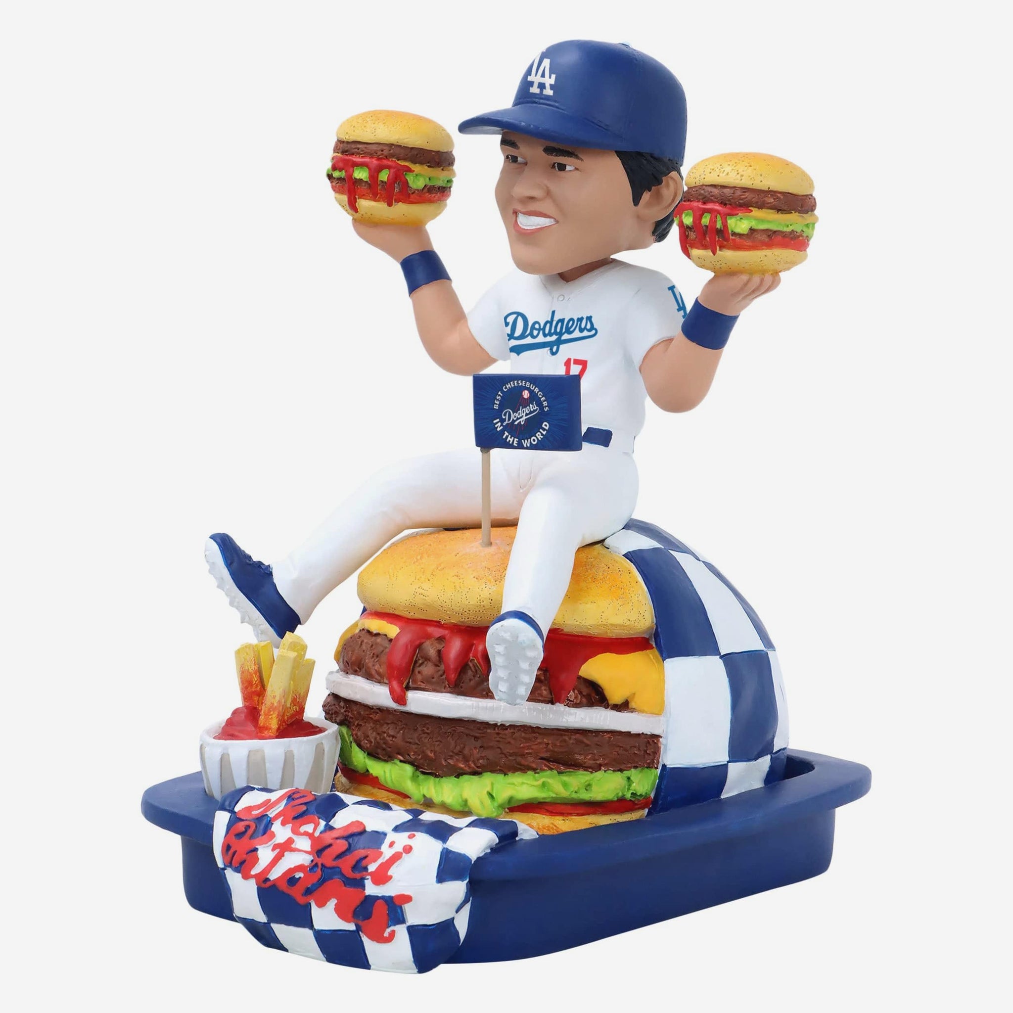 Shohei brings the heat to home plate and the burgers to your fancave! Fire up the grill and get ready to serve up some greatness with this Shohei Ohtani Los Angeles Dodgers Cheeseburger Bobblehead.