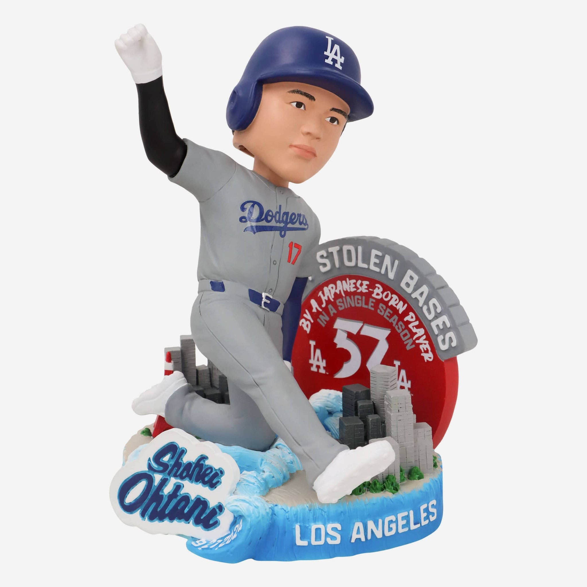 57 stolen bases and counting! Rewind the highlight reel to this historical steal with the Shohei Ohtani Los Angeles Dodgers Most Stolen Bases in a Single MLB Season by a Japanese Born Player Bobblehead.
