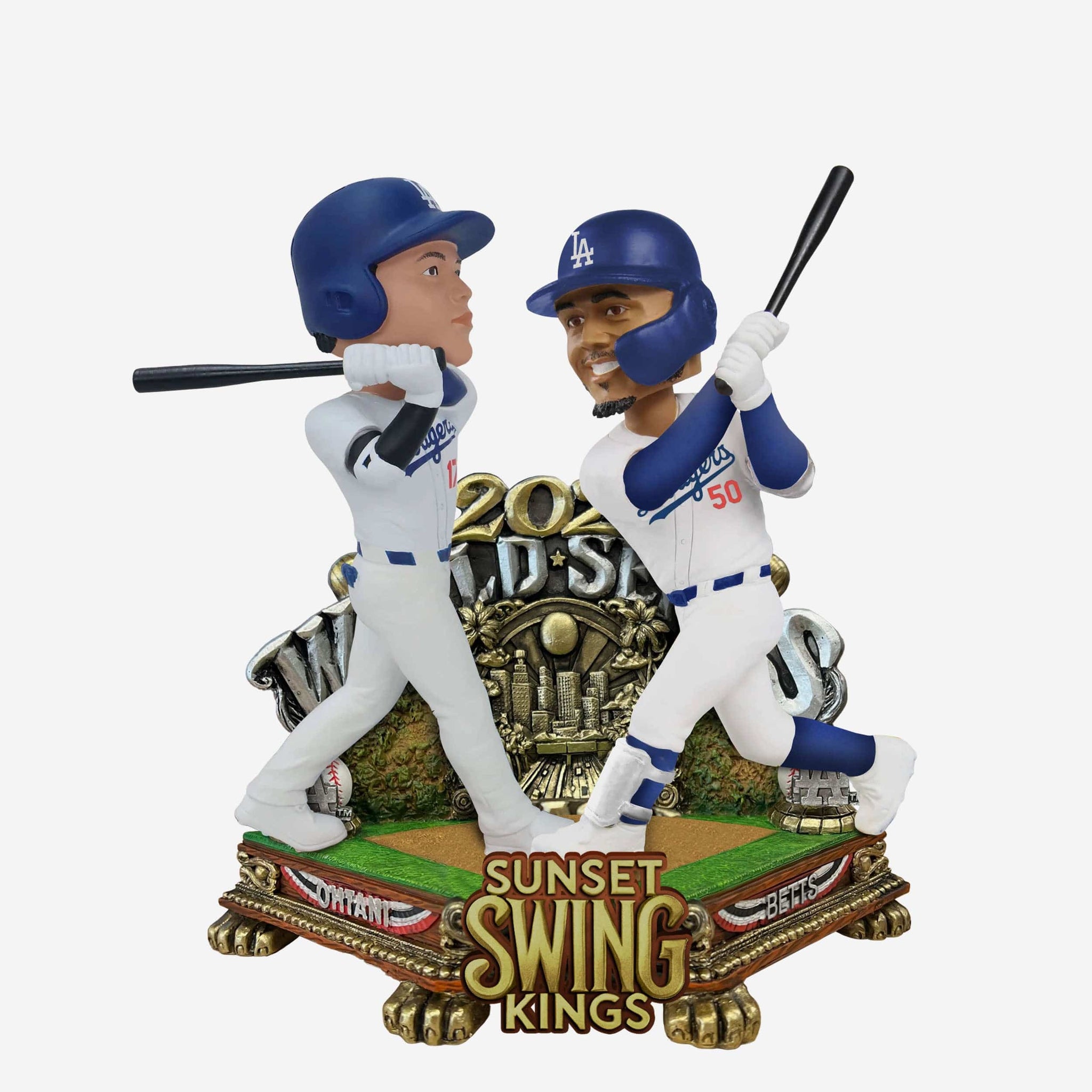 These Sunset Swing Kings know a thing or two about the longball! Take it out of the park with the Shohei Ohtani & Mookie Betts Los Angeles Dodgers 2024 World Series Dual Bobblehead.