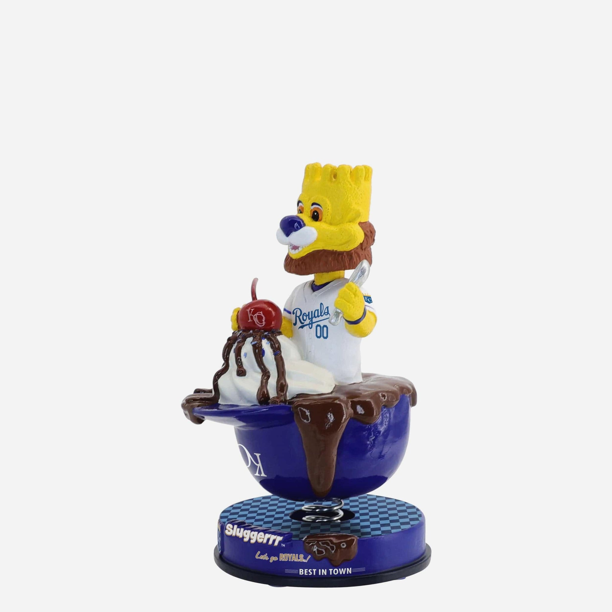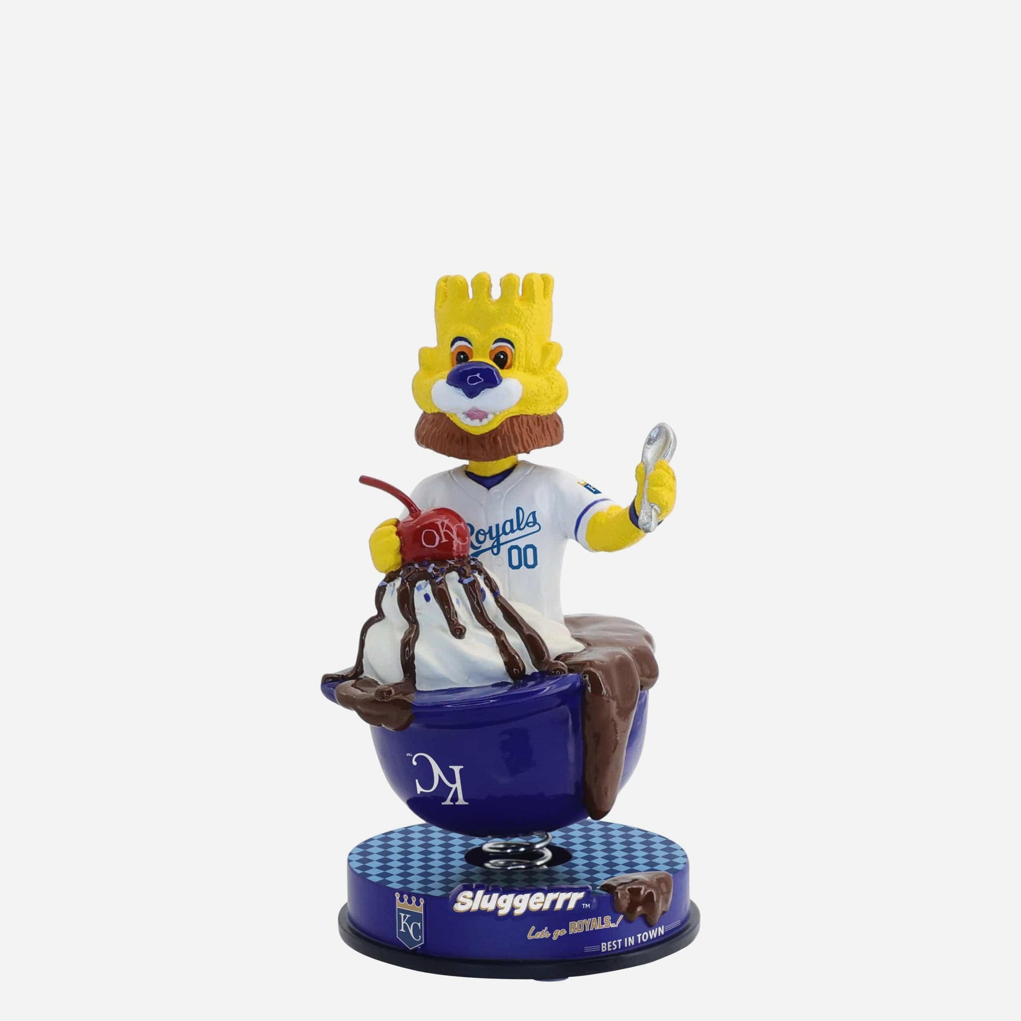 Sluggerrr is serving up team spirit, one scoop at a time! Add some flavor to your fandom with the Sluggerrr Kansas City Royals Ice Cream Helmet Mascot Mini Bobblehead.