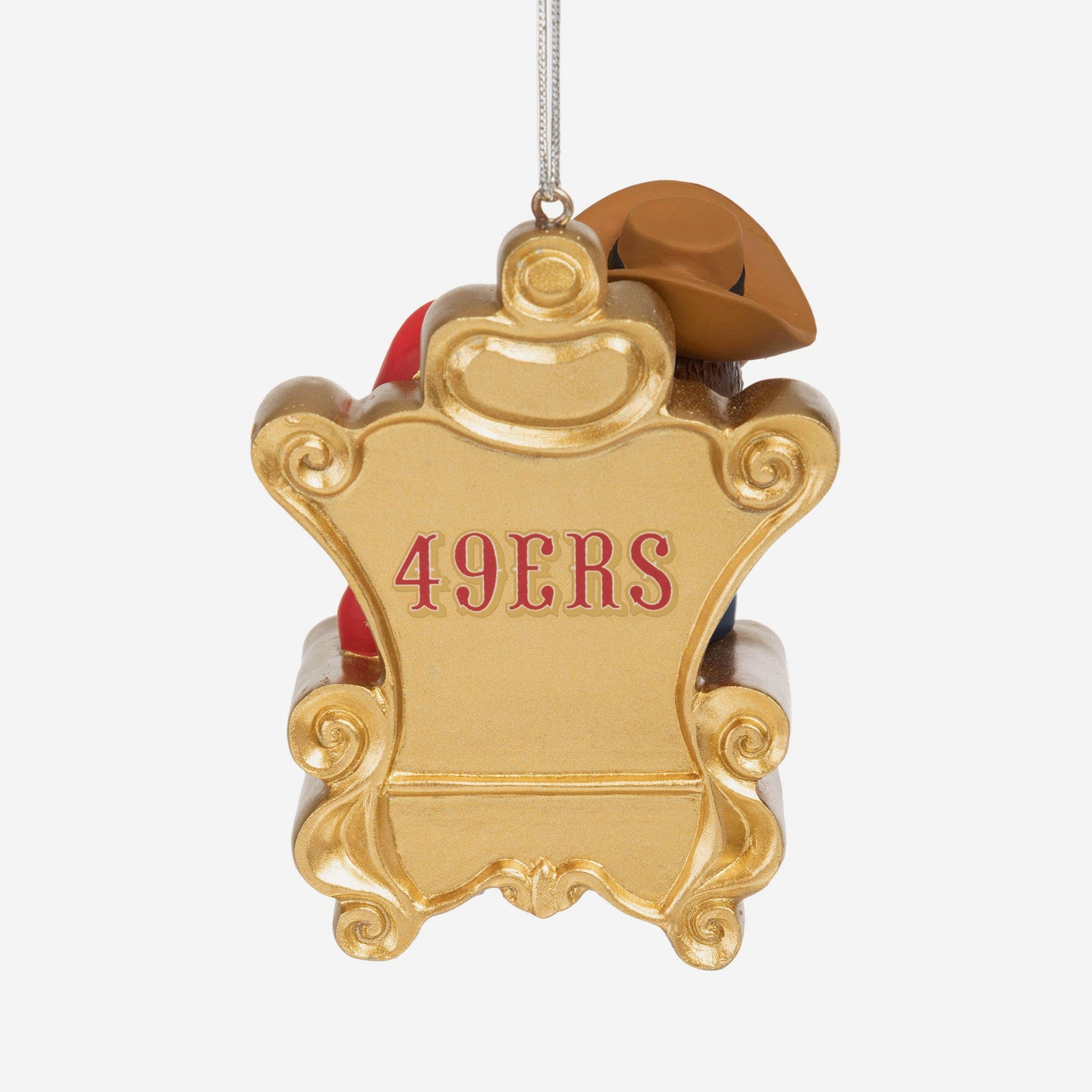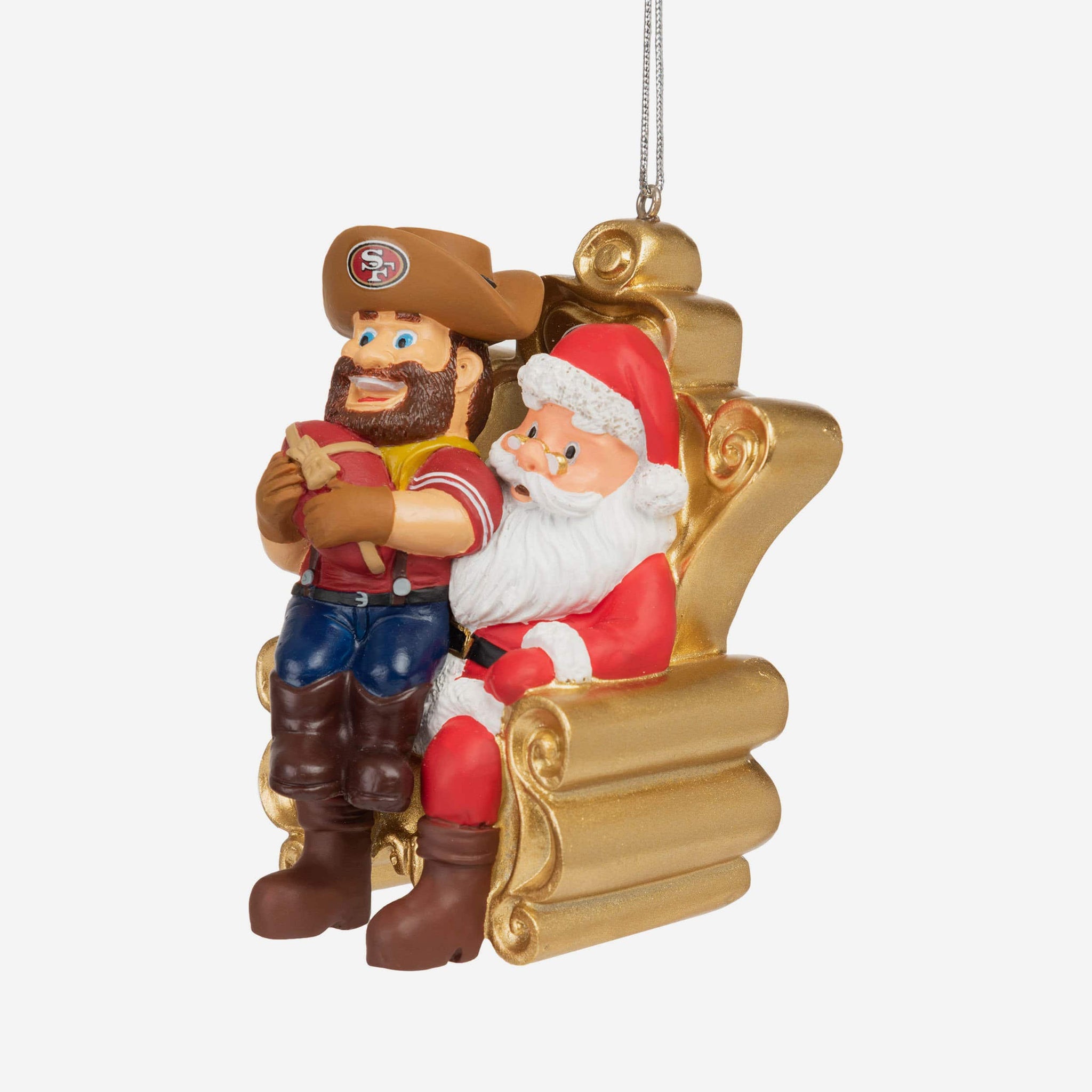 We hope the mascot's got his list ready, because he's paying St. Nick a visit in this Sourdough Sam San Francisco 49ers Mascot on Santa's Lap Ornament!