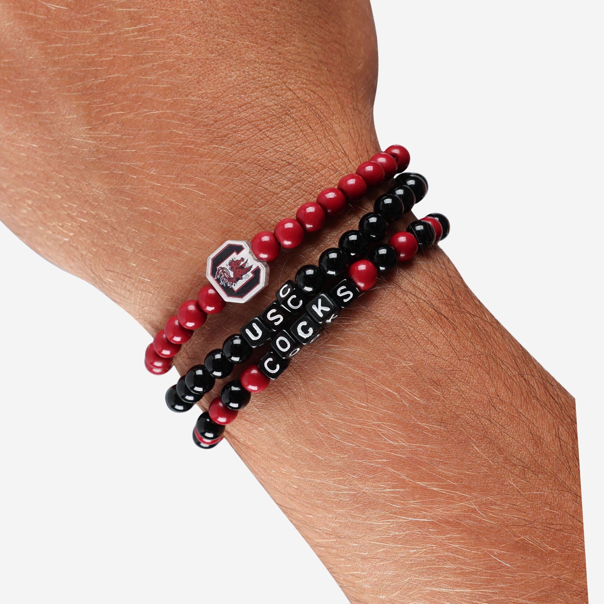 A whole new way to rep the team in style is here. Step up your fan fashion sense with this South Carolina Gamecocks 3 Pack Beaded Friendship Bracelet. These matching friendship bracelets have an all-over team-colored design and team logo displays, which makes them the perfect way to show your support for the South Carolina Gamecocks on gamedays and every day in between.