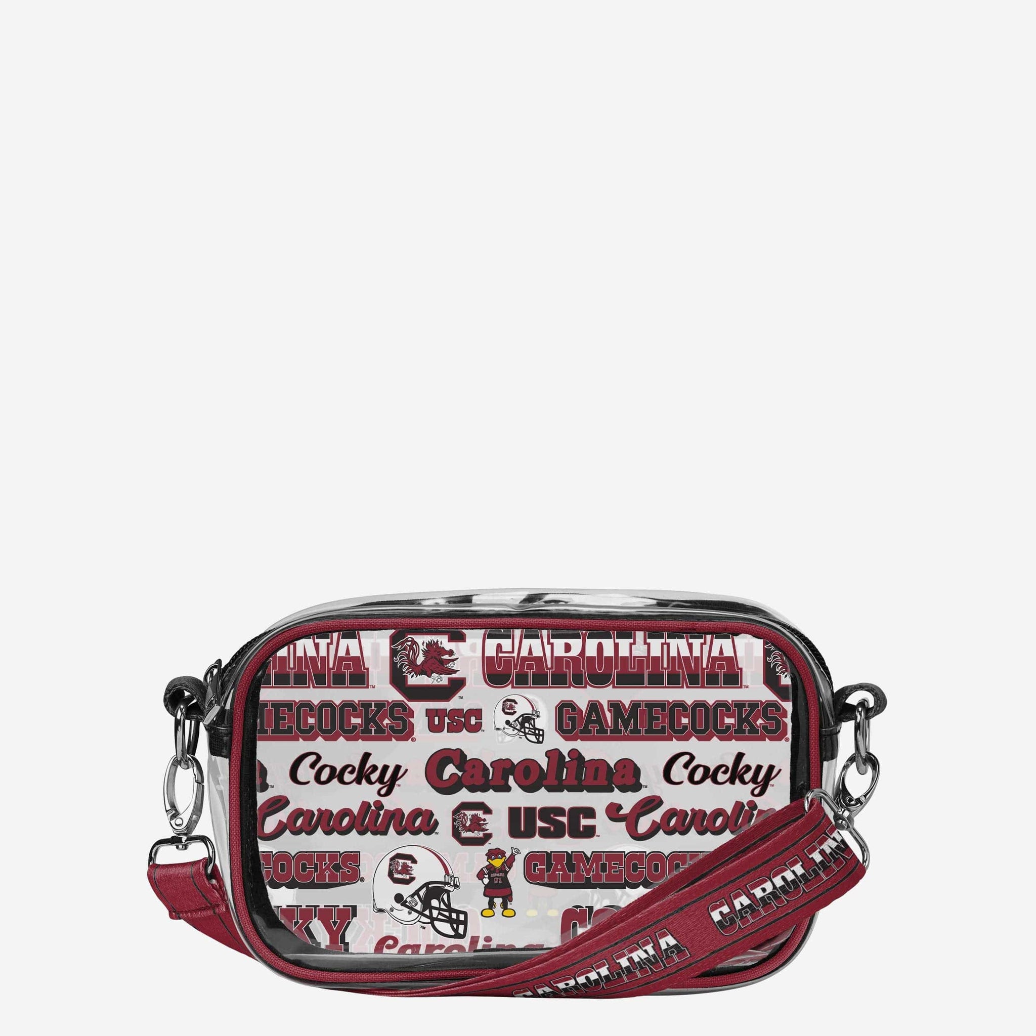 Over your shoulder and off to the game. Whether you're running errands on the town or running the tailgate in the parking lot, this South Carolina Gamecocks Repeat Retro Print Clear Crossbody Bag is the perfect way to carry the team like never before.