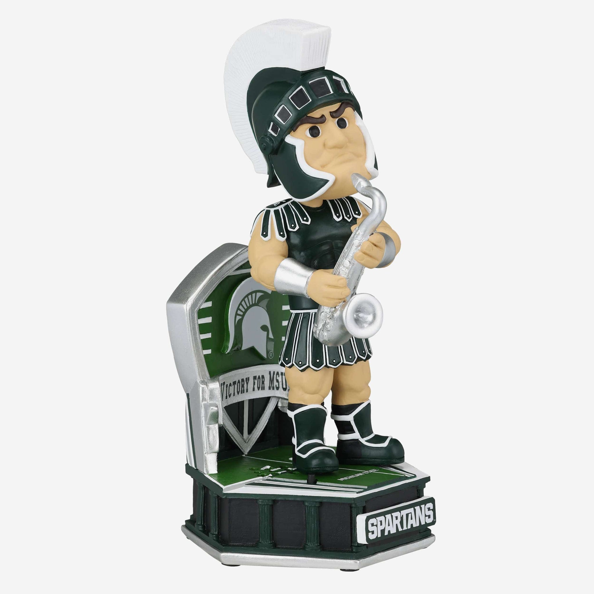 • Portrays Sparty posing in his green gameday uniform and holding a saxophone, ready to bust out some tunes