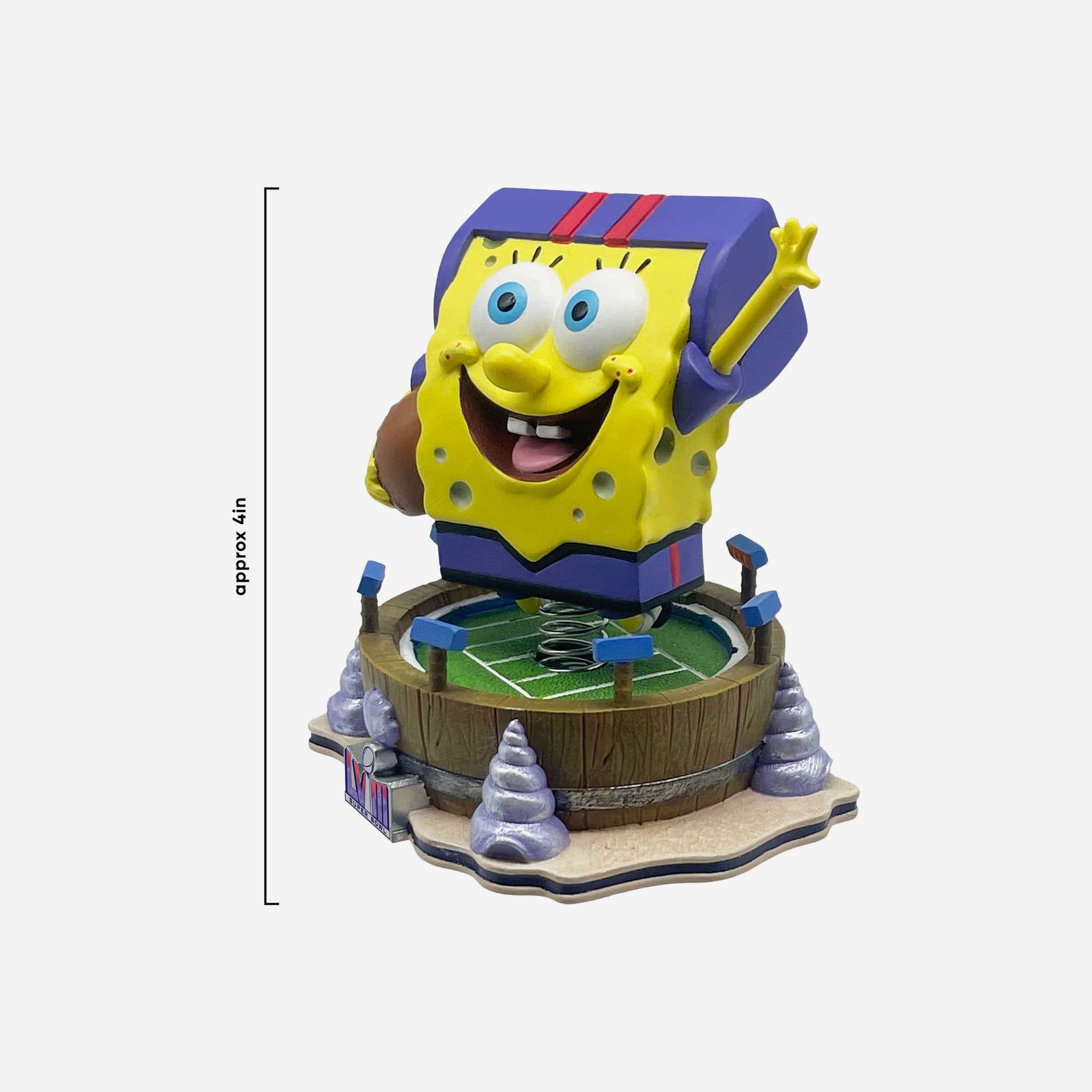 - Thematic stadium base with seashell accents to bring this yellow sponge from Bikini Bottom to the Super Bowl