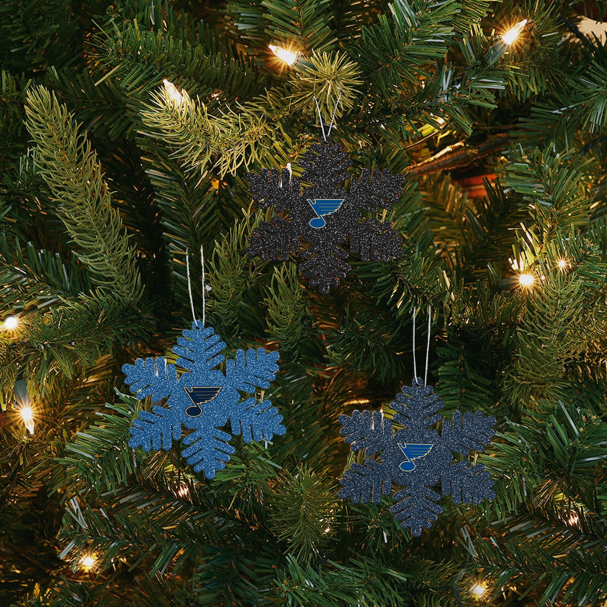 One half "Let it Snow", one half "Go Team Go!" This holiday season, let your team spirit AND holiday spirit shine by proudly displaying this St. Louis Blues 3 Pack Metal Glitter Snowflake Ornament!