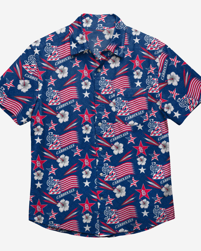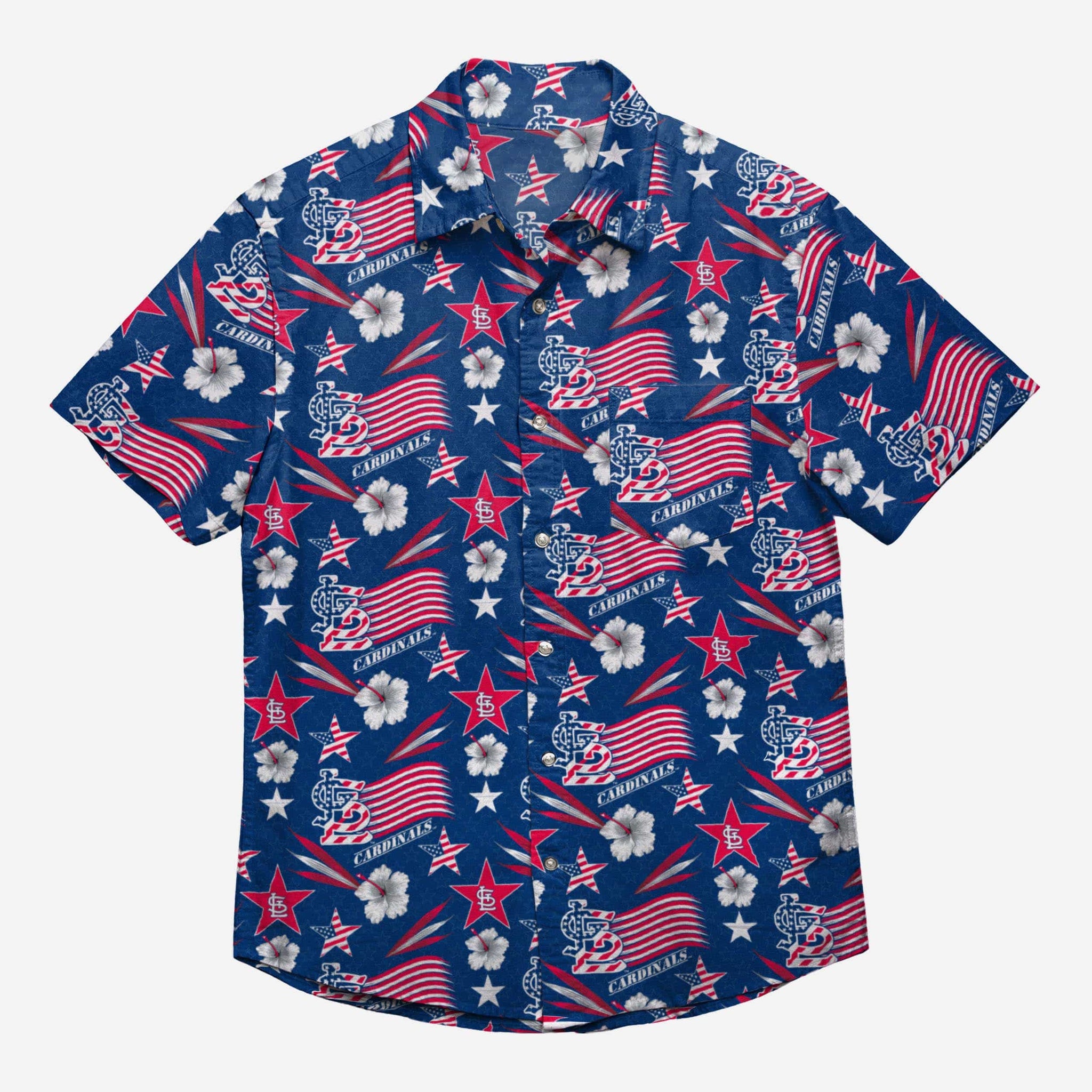 Stars + stripes + team spirit + style = The St. Louis Cardinals Americana Button Up Shirt. Dress to impress, all summer long!