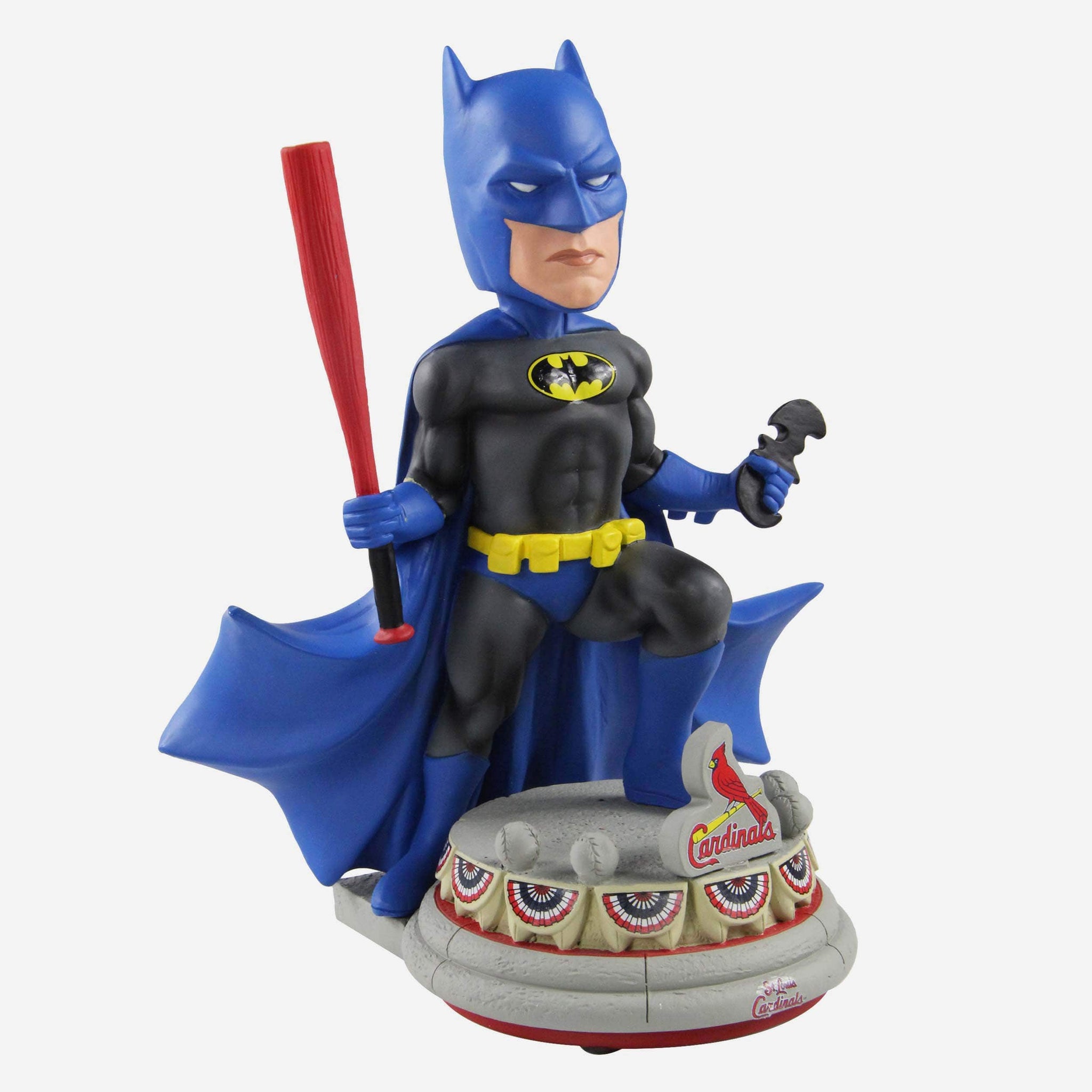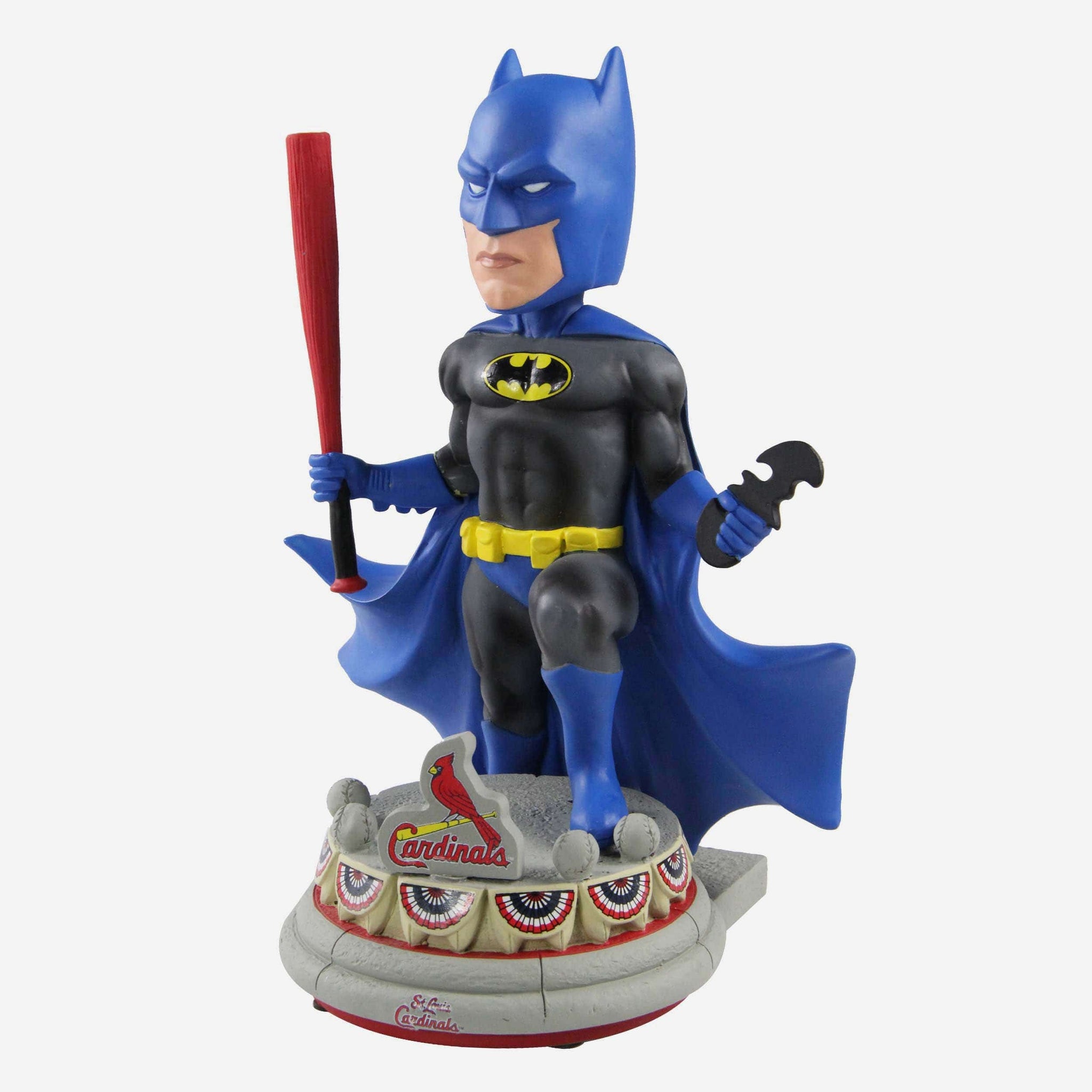 Batman? Holding a baseball bat? That's, like, bat-ception. Step up to the plate and hit a grand slam straight out of Gotham with this St. Louis Cardinals Batman DC Bobblehead.