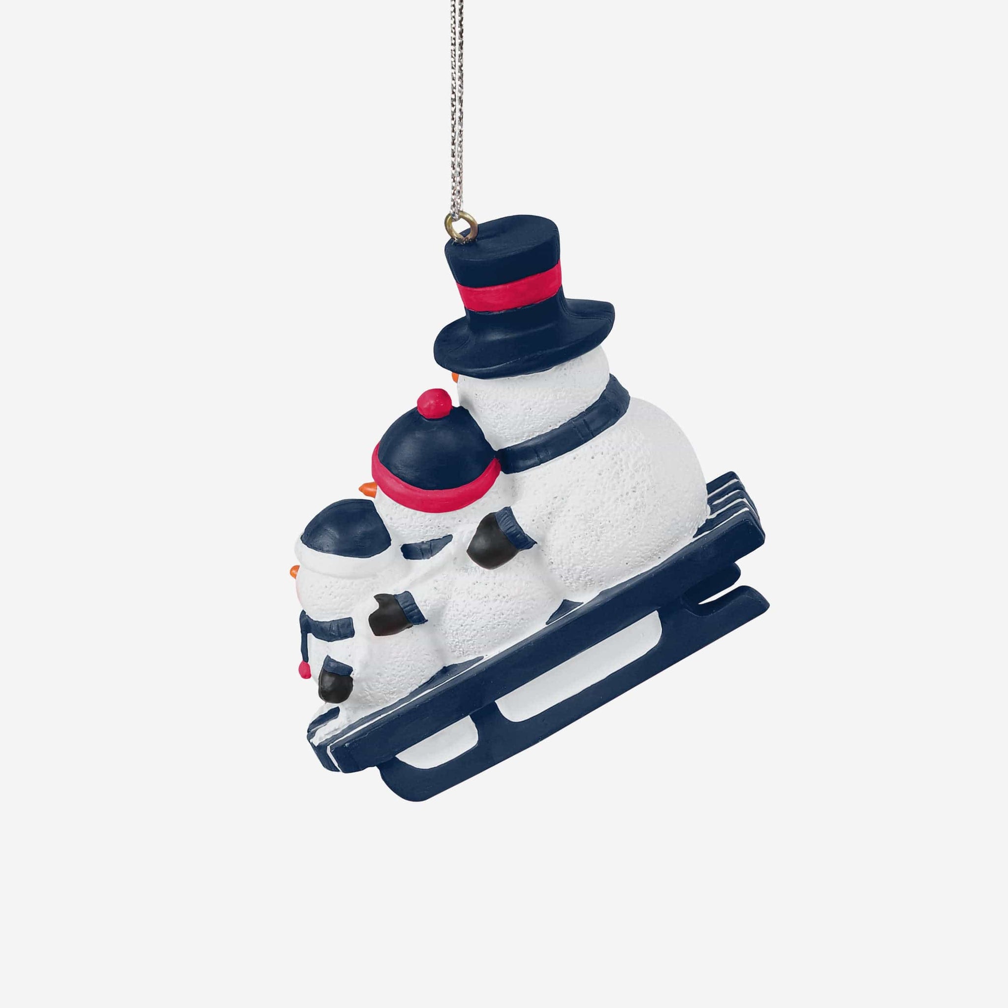 - Portrays three snowmen riding team-colored sled, repping the team in style