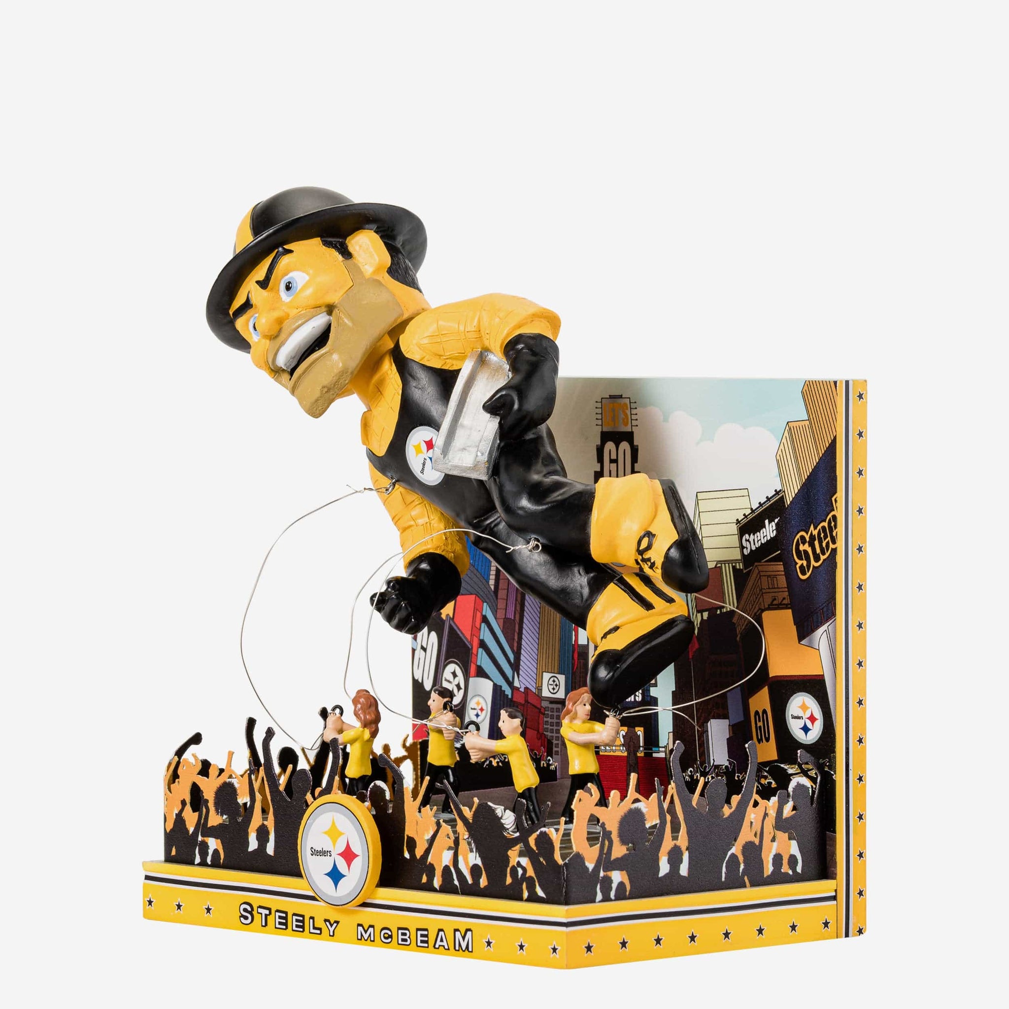 Gobble gobble? Bobble bobble. No need to plan a trip - The parade route is making a stop in your fancave. Feast on some fandom and be the grand marshal of your celebration with this Steely McBeam Pittsburgh Steelers Parade Float Mascot Bobblehead!