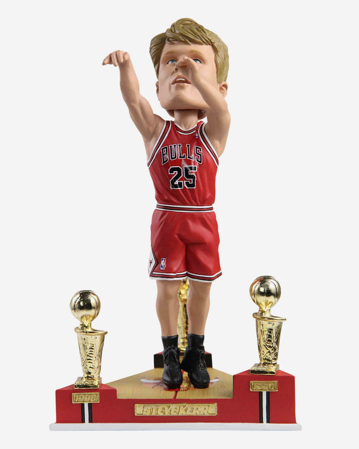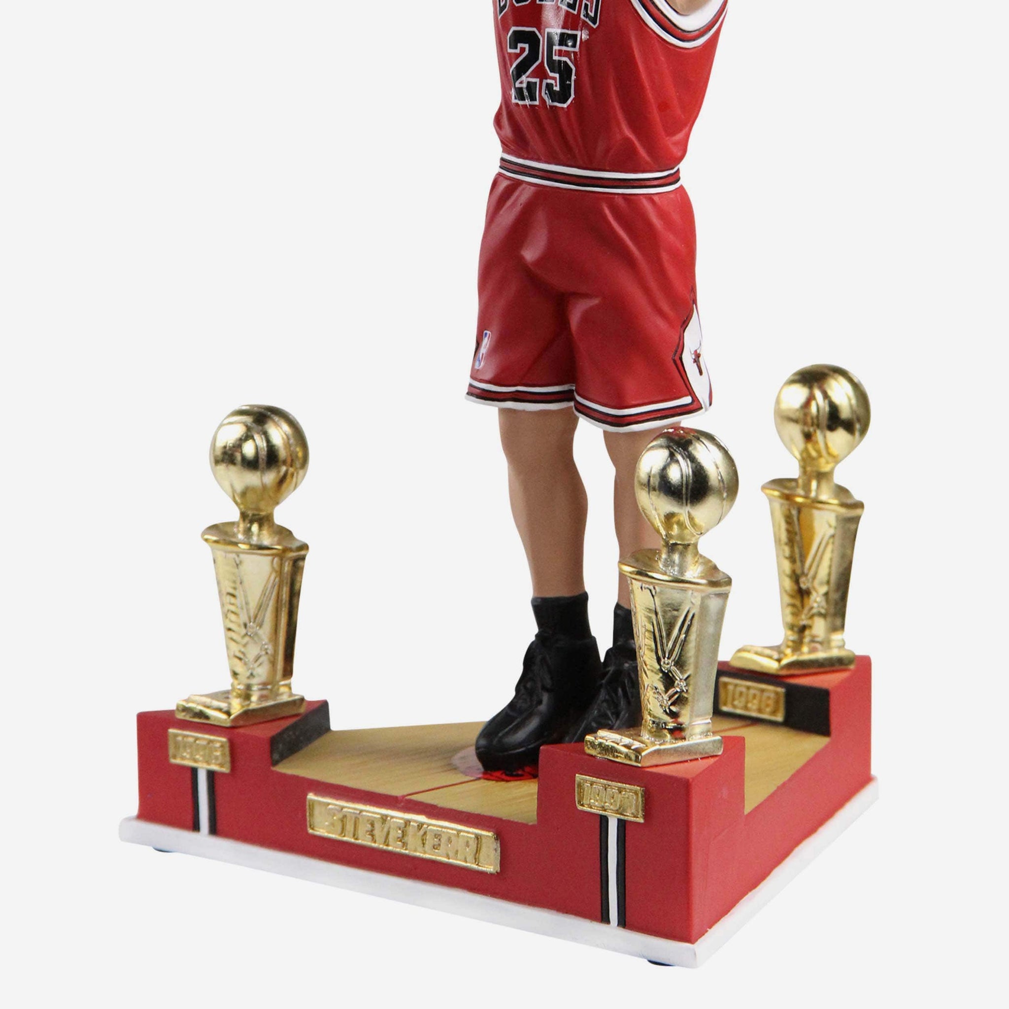 Adding some throwback Bulls fandom to your collection is as easy as 1, 2, 3. Three championshps, that is. Add a triple threat of championship greatness to your collection and re-live the epic '90s Bulls with this Steve Kerr Chicago Bulls 3x NBA Champion Bobblehead.