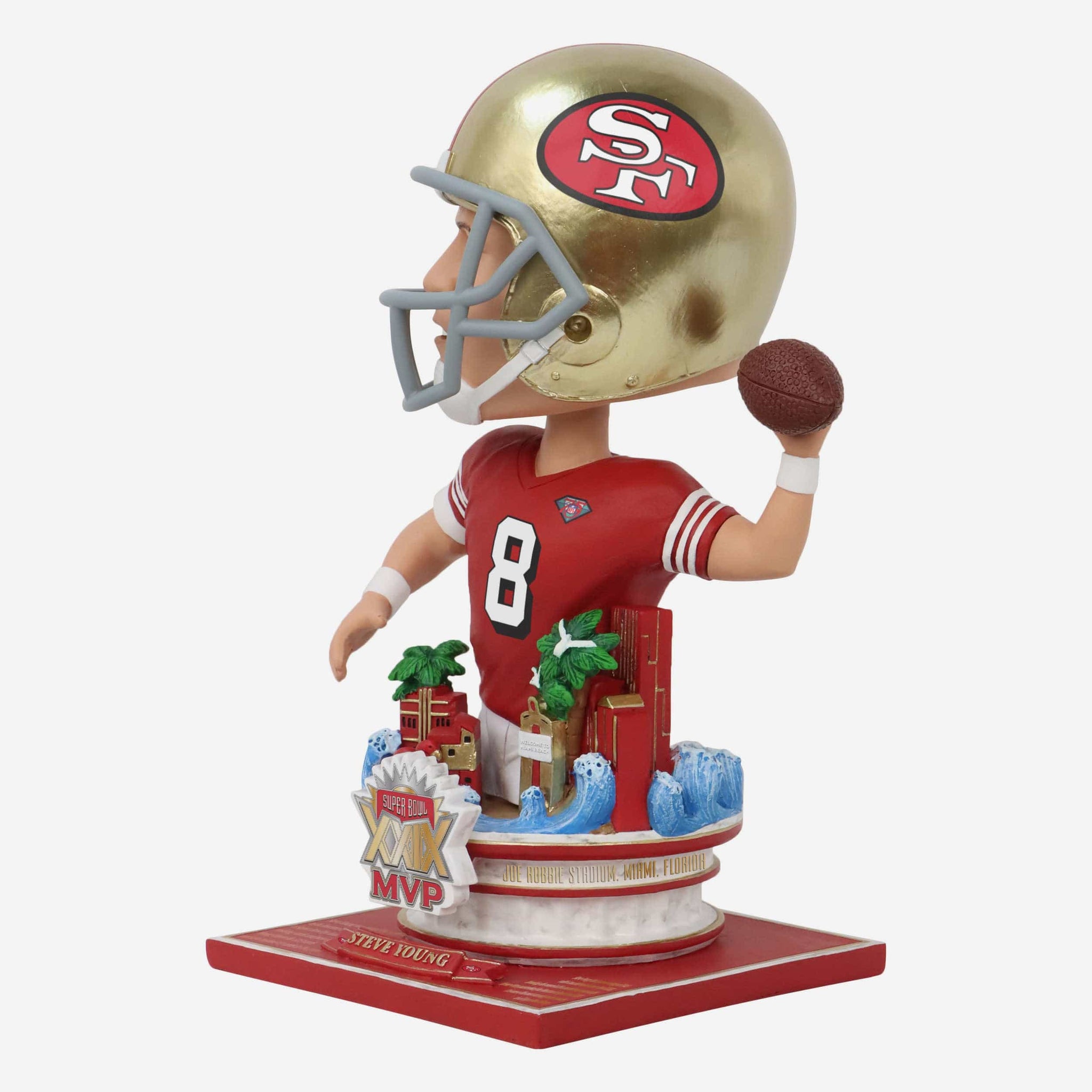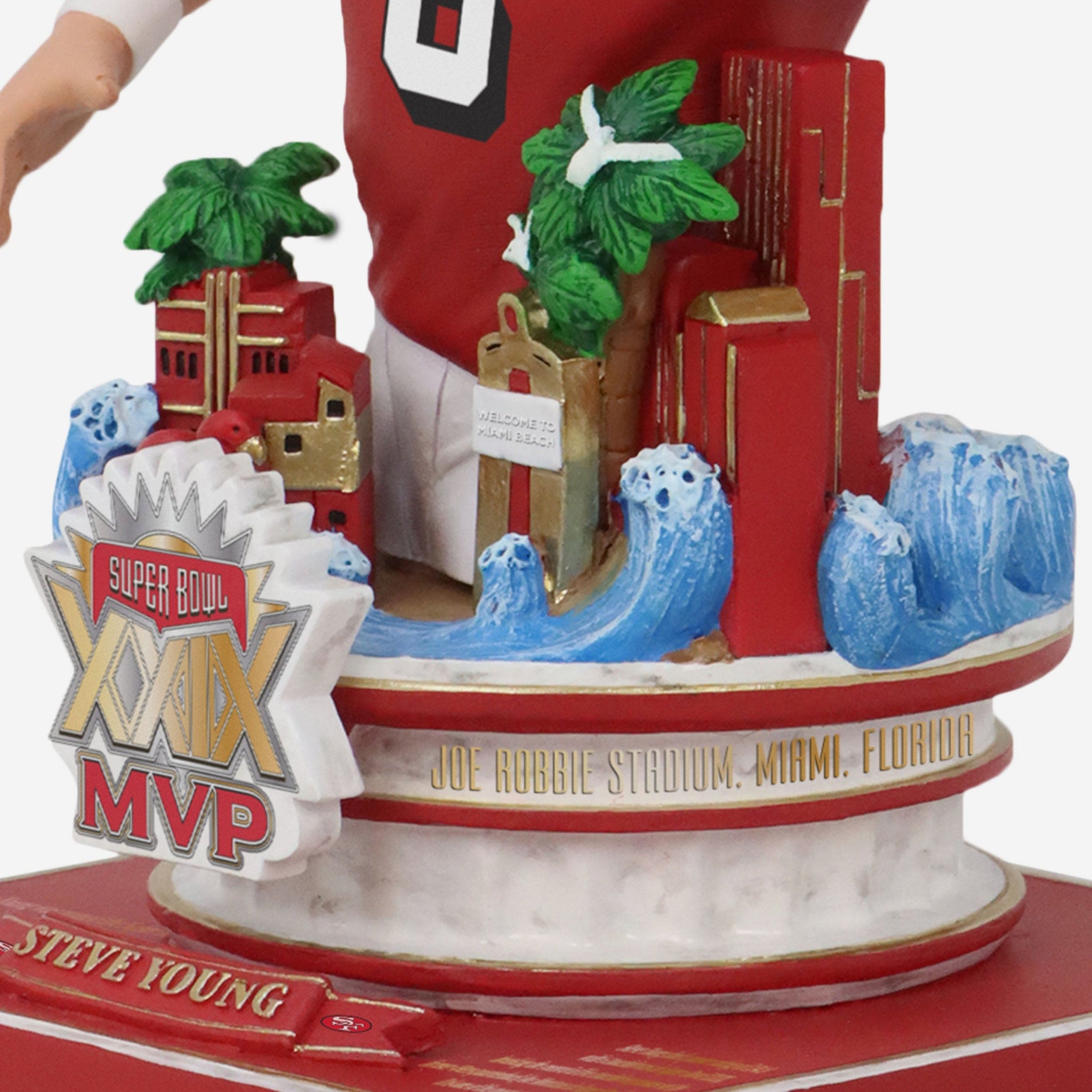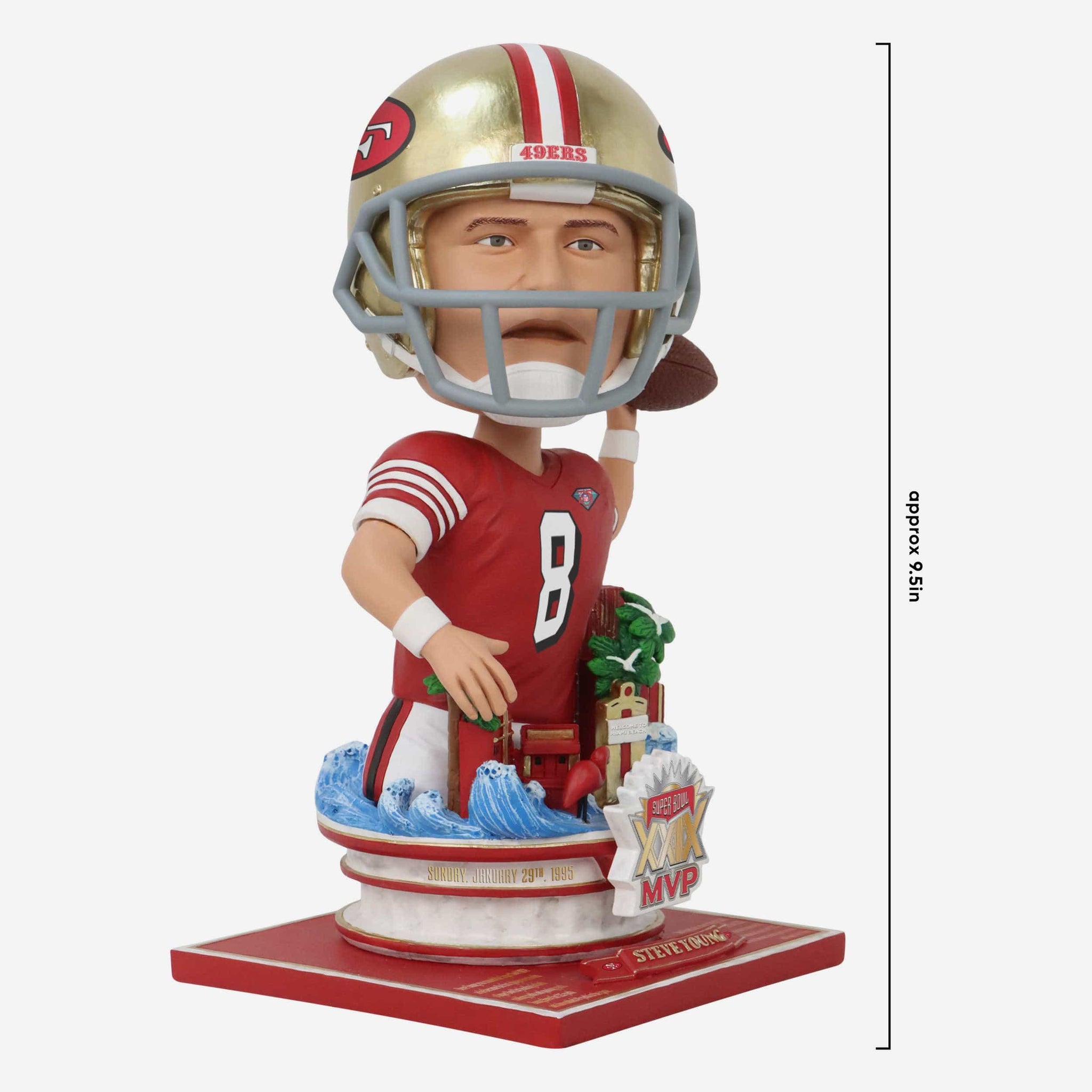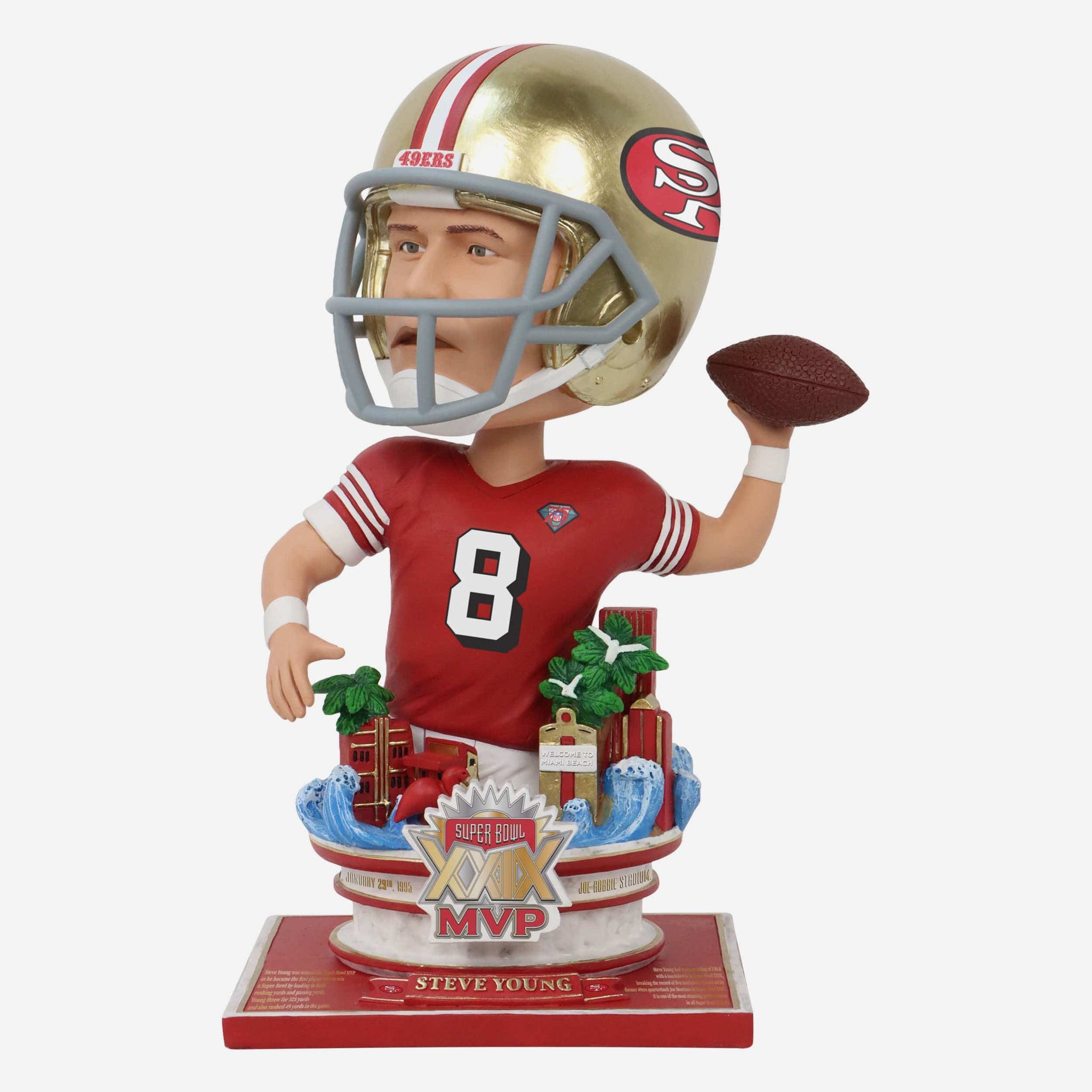 M-V-P! M-V-P! Turn back the clock and show off a "Super" player from the past with this Steve Young San Francisco 49ers Super Bowl XXIX MVP Bust Bighead Bobblehead.