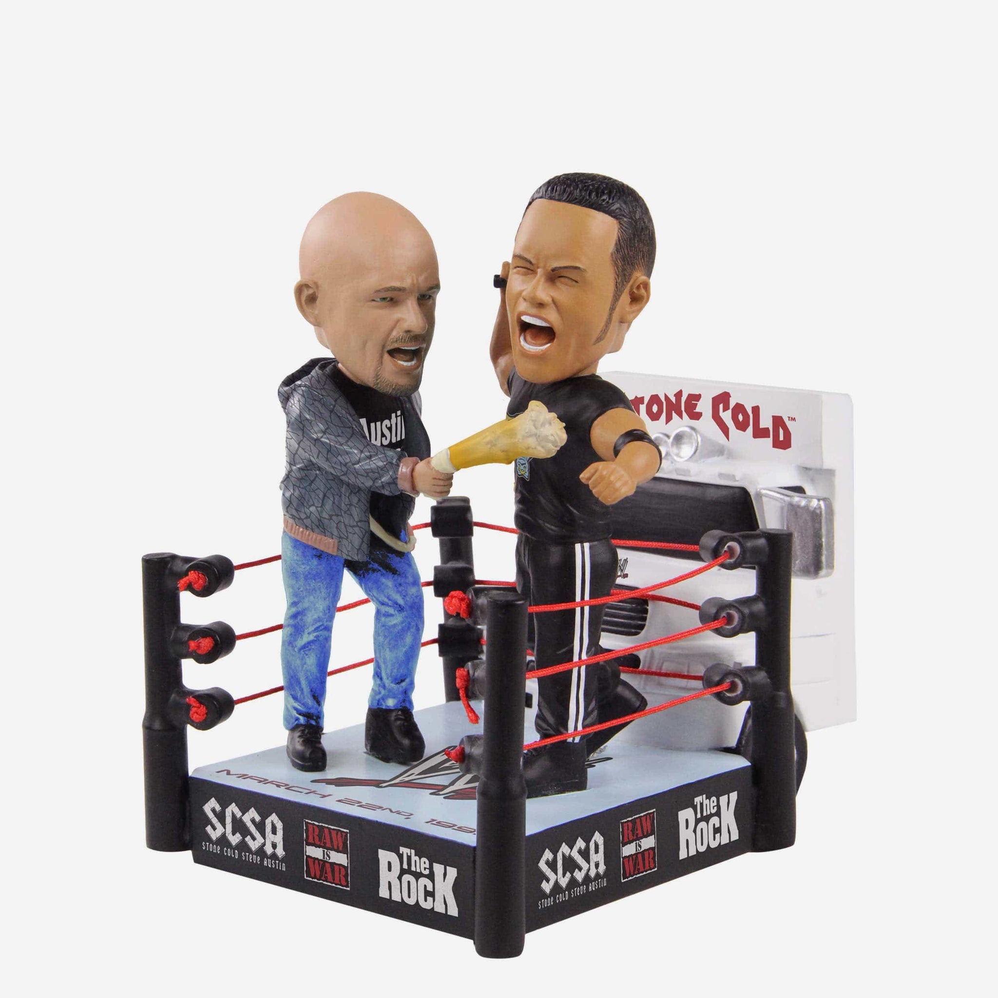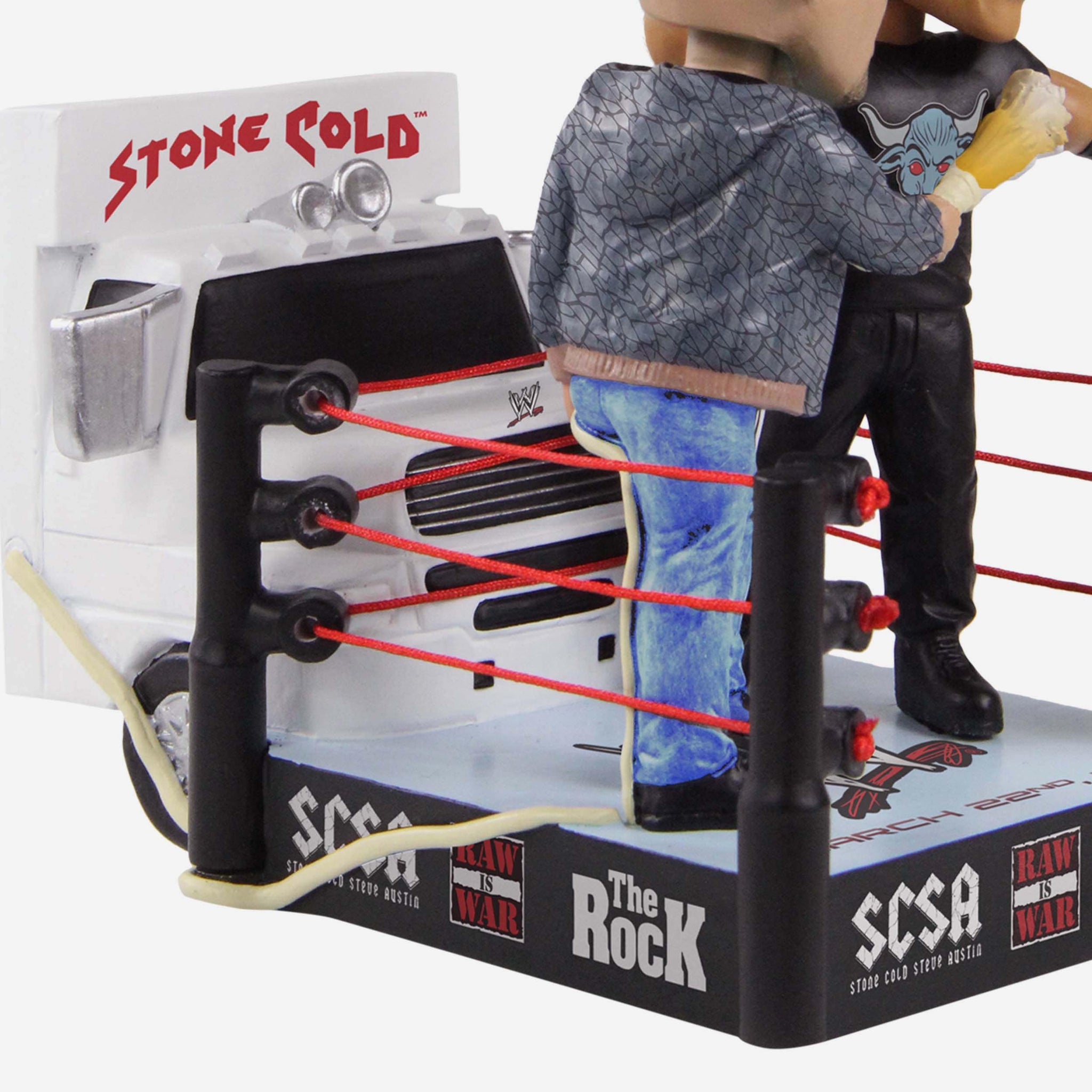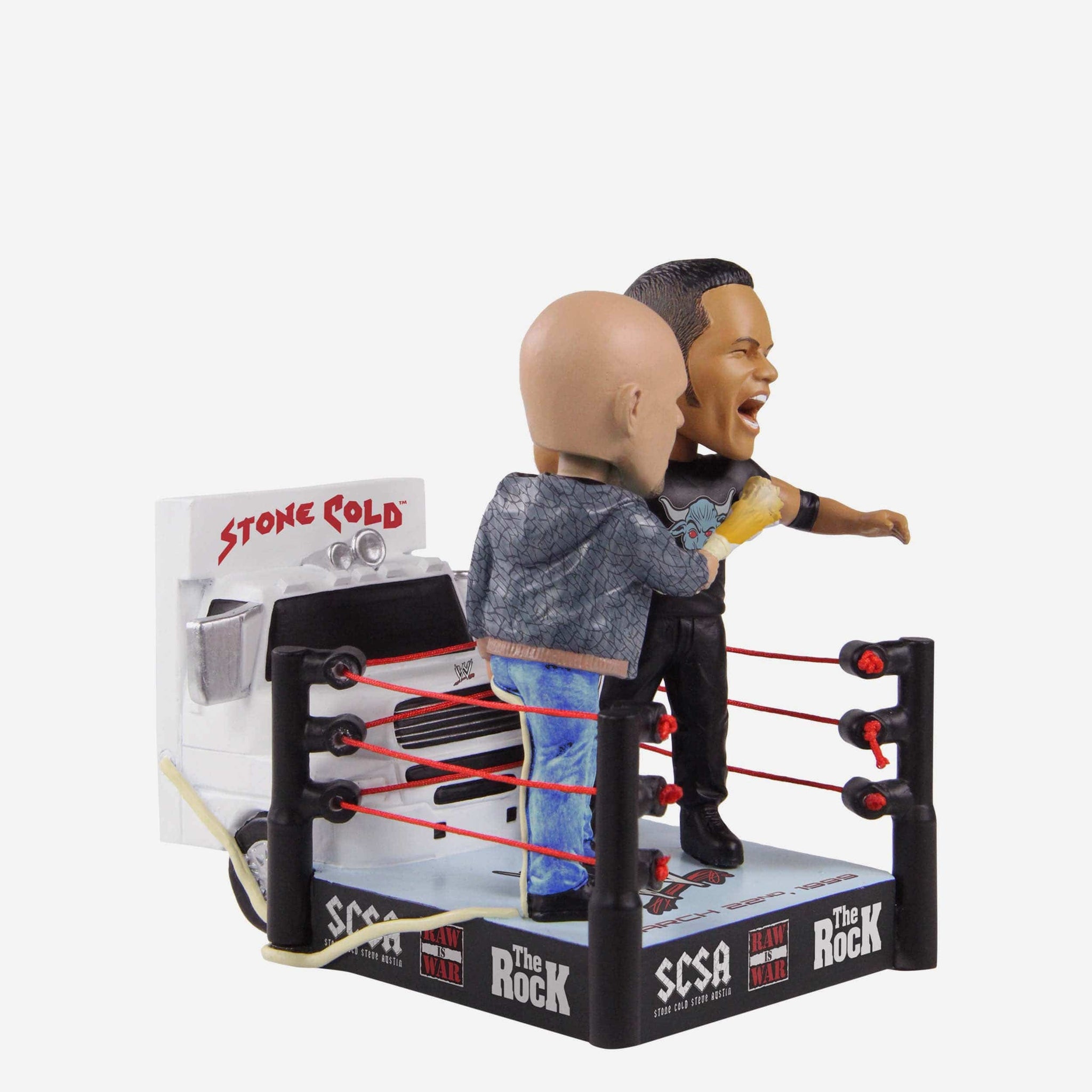 Stone Cold + The Rock + A truck = One iconic moment. Open up several cans of whoop-you-know-what with the Stone Cold Steve Austin & The Rock WWE Truck Mini Bobblehead Scene.