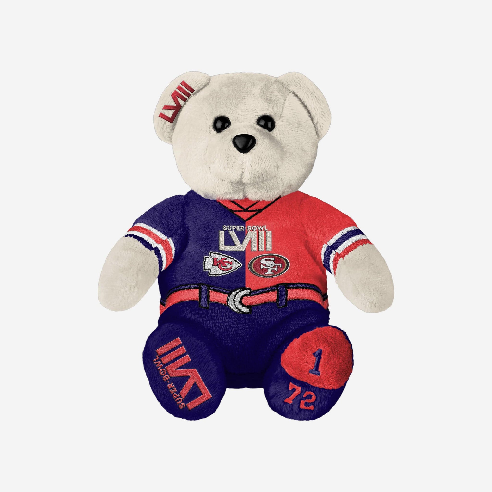 Get ready for a legendary showdown in Las Vegas! It's the Chiefs, the Niners, and this Super Bowl LVIII Matchup Team Beans Commemorative Embroidered Bear in your collection for all the action.