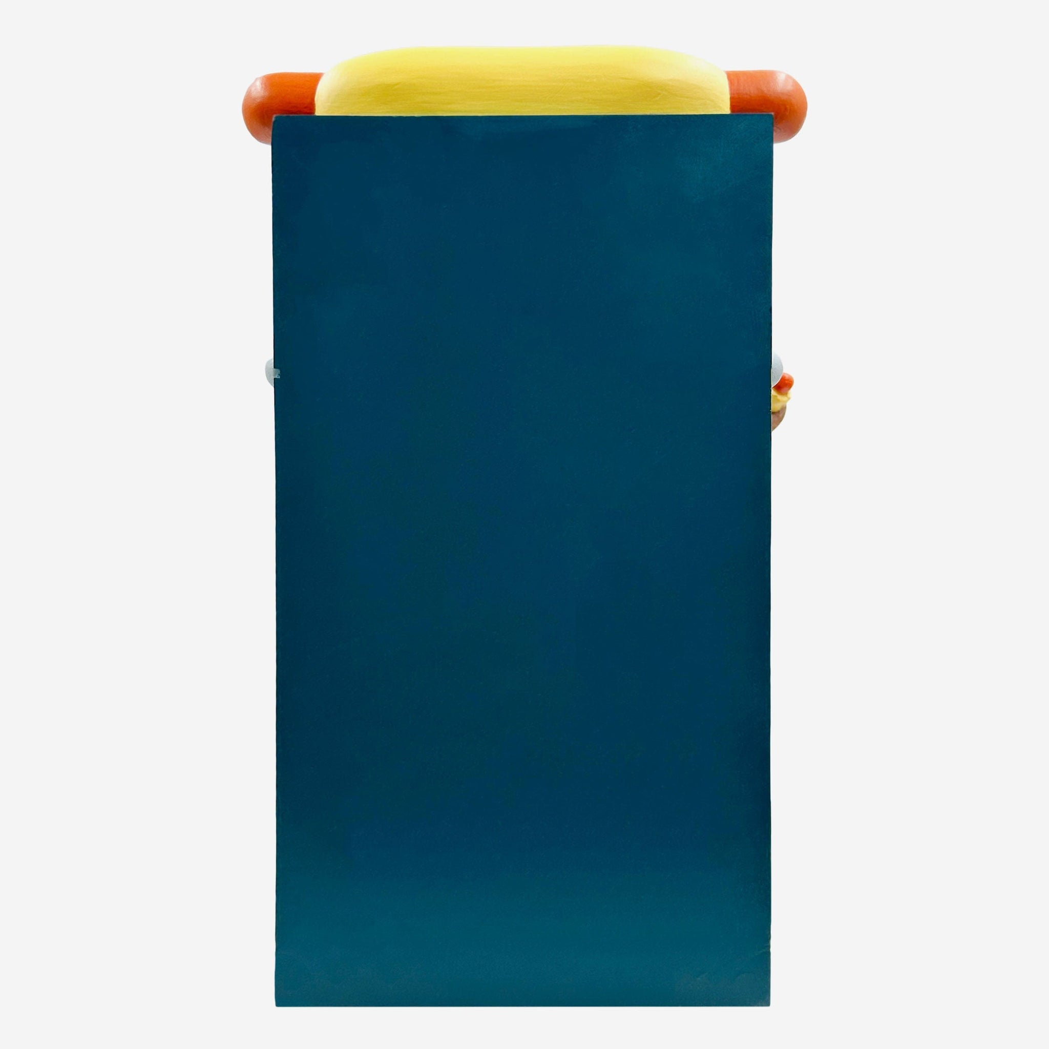 - Portrays Swoop wearing a thematic hot dog competition shirt, holding a hot dog in one hand and dipping another hot dog into a cup with the other hand, ready to dominate the competition