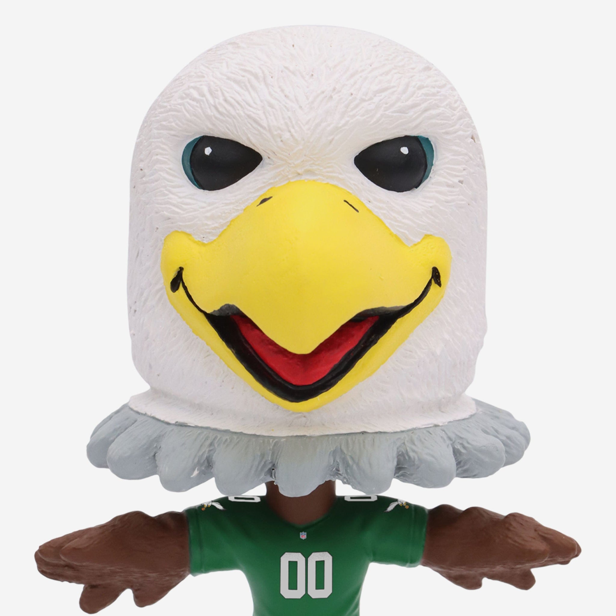 What's old is new again on the Philly gridiron. Switch up your favorite mascot’s threads with this Swoop Philadelphia Eagles Kelly Green Uniform Field Stripe Mascot Mini Bighead Bobblehead.