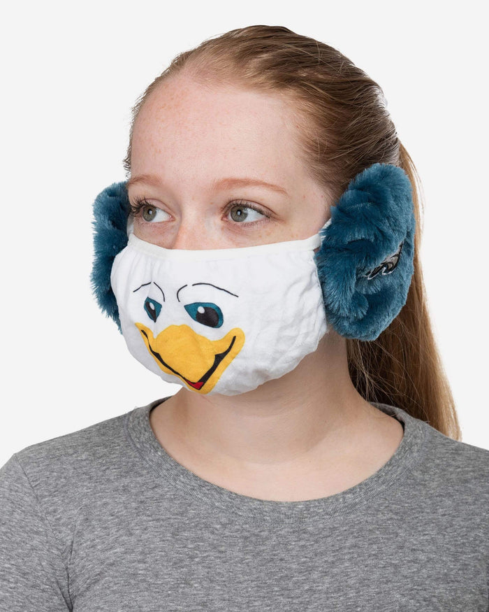 Cover up while you represent your favorite team in this Swoop Philadelphia Eagles Mascot Earmuff face covering!