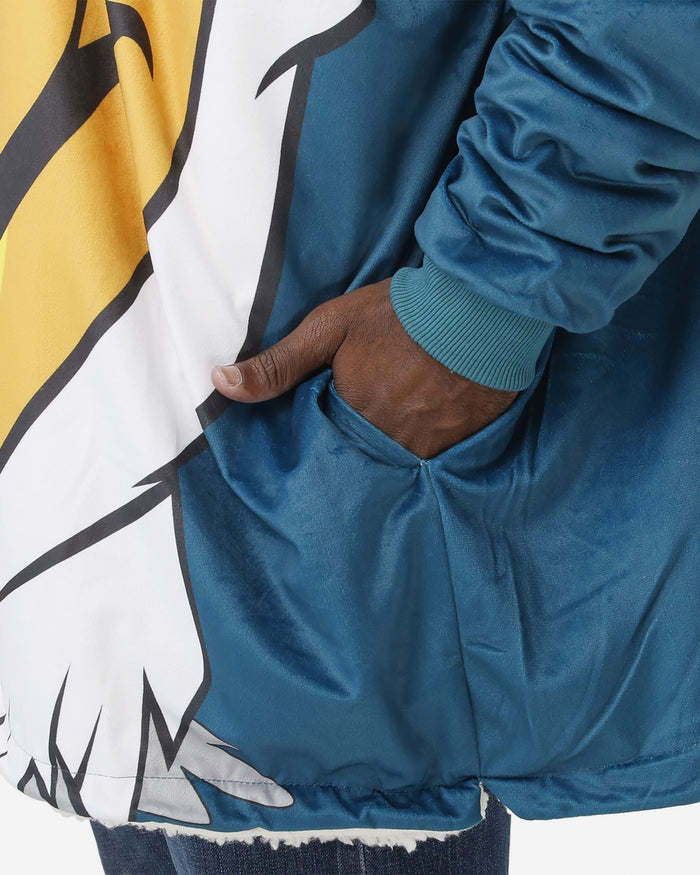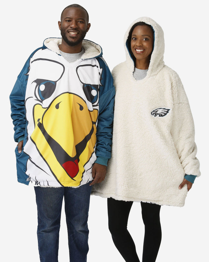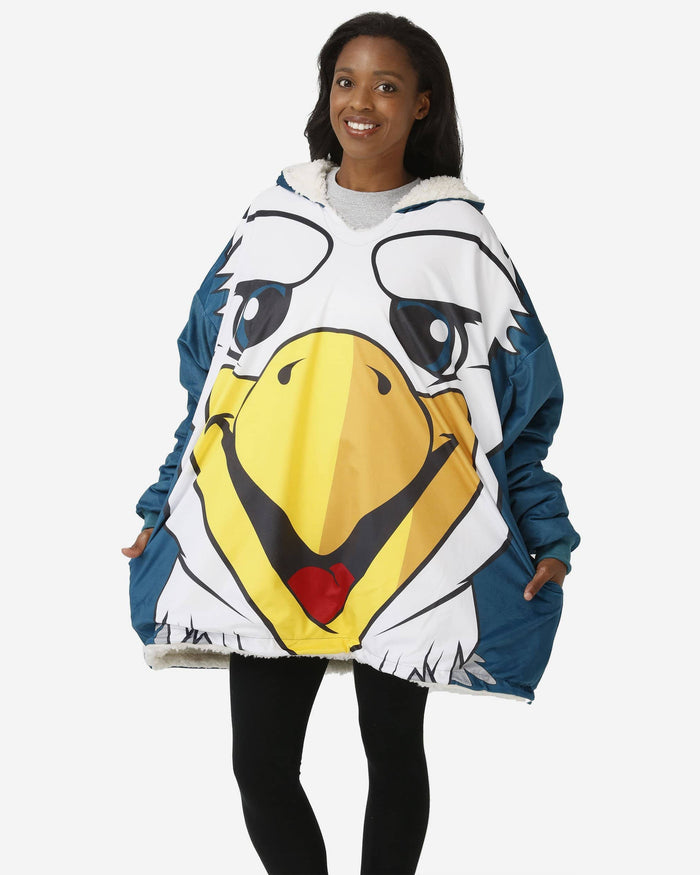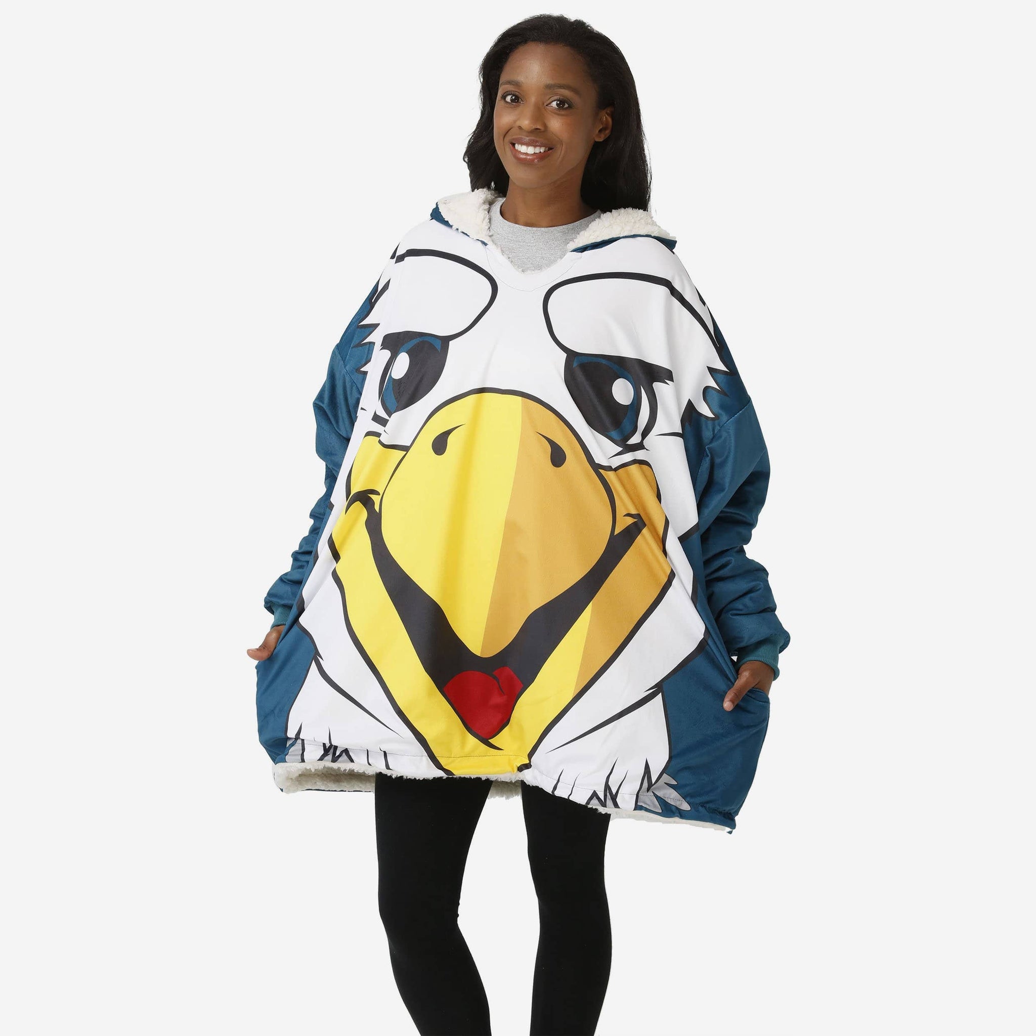 Dancing during game breaks. Playing pranks on spectators. Throwing t-shirts into the crowd. The mascot EMBODIES the fun of gameday. And now, you can enjoy that fun from the comfort of your own couch by lounging in this Swoop Philadelphia Eagles Reversible Mascot Hoodeez. No hot dog cannon necessary.
