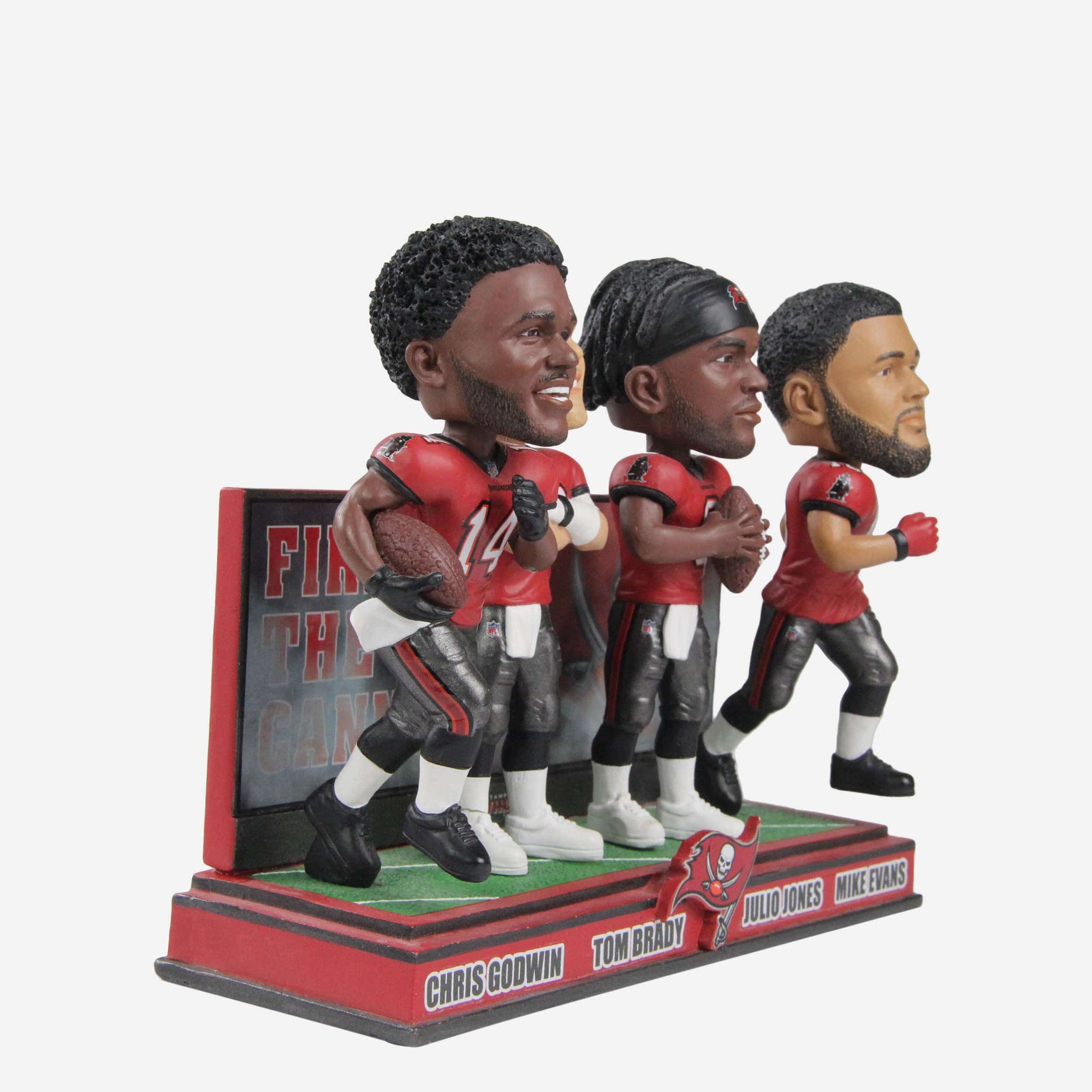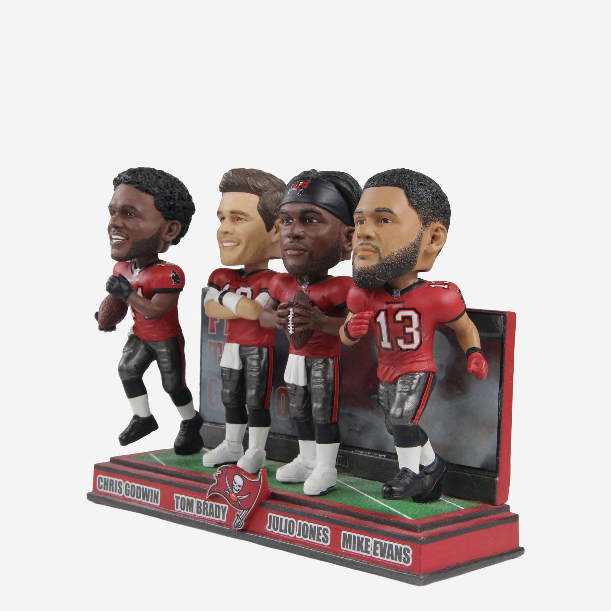 Opposing defensive backs, look away! Tom Brady, Mike Evans, Chris Godwin, and Julio Jones are ready to take the field. We know Buccaneers tend to attack by sea, but this Tampa Bay Buccaneers Air Assault Mini Bobblehead Scene prefers to do so through the air.