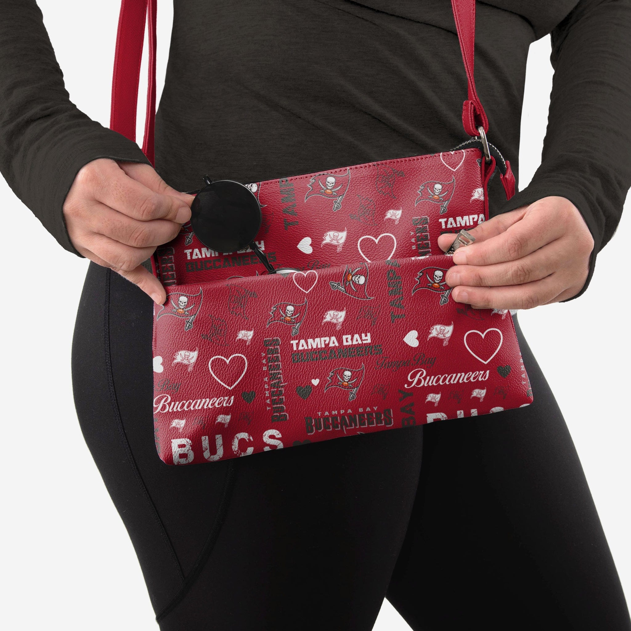 Don't wear your heart on your sleeve - wear it ACROSS your sleeve every time you rock this Tampa Bay Buccaneers Logo Love Crossbody Purse!