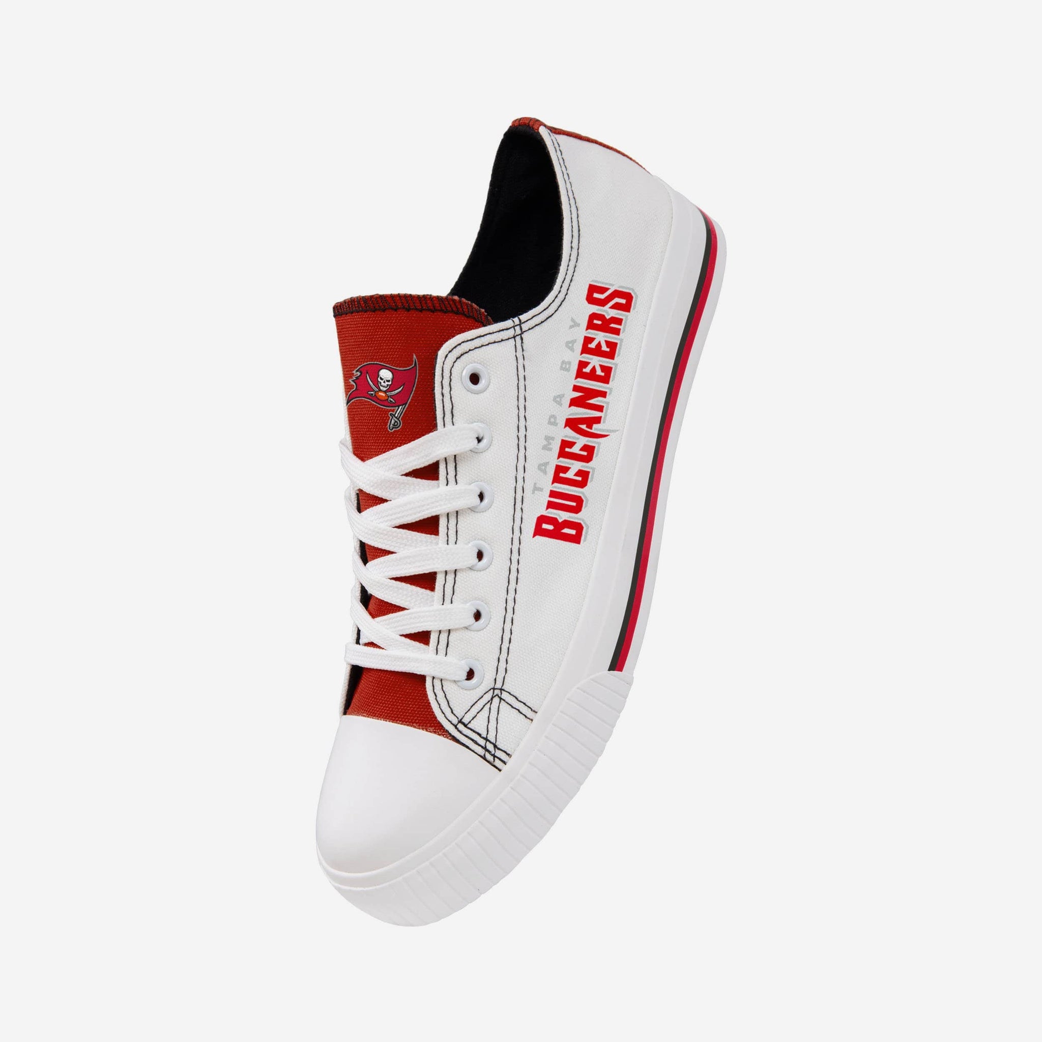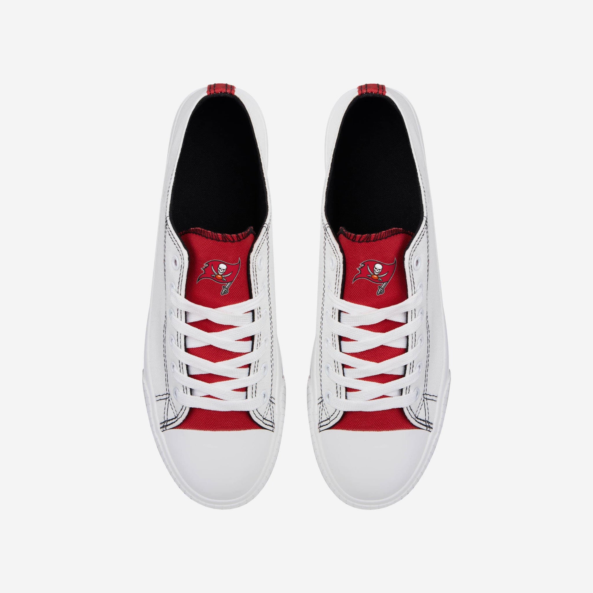 Low top shoes. High level fandom. Take countless steps in the right direction with these Tampa Bay Buccaneers Men's Low Top White Canvas Shoes.