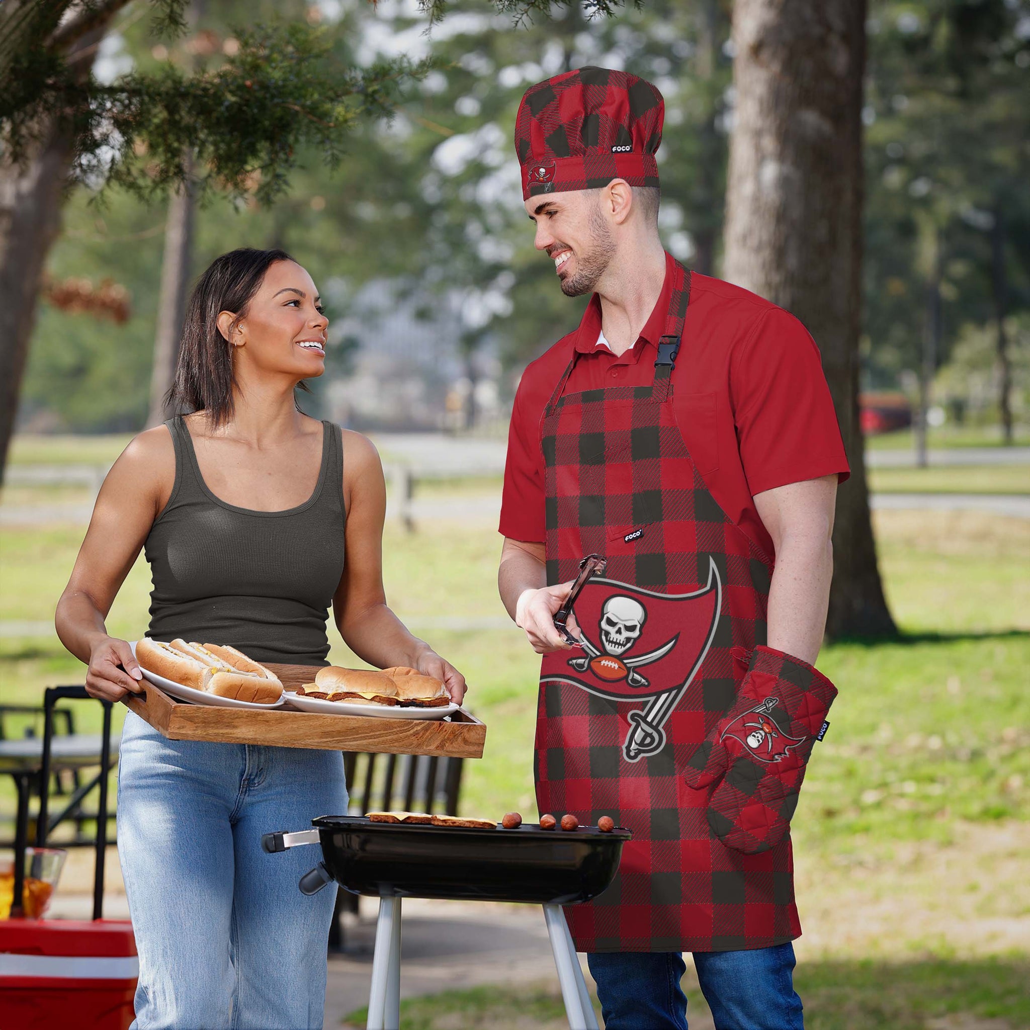 Get ready to serve up the best food in the greatest fan fit. From the kitchen, to the table, to game day, do it all in style with the Tampa Bay Buccaneers Plaid Chef Set.