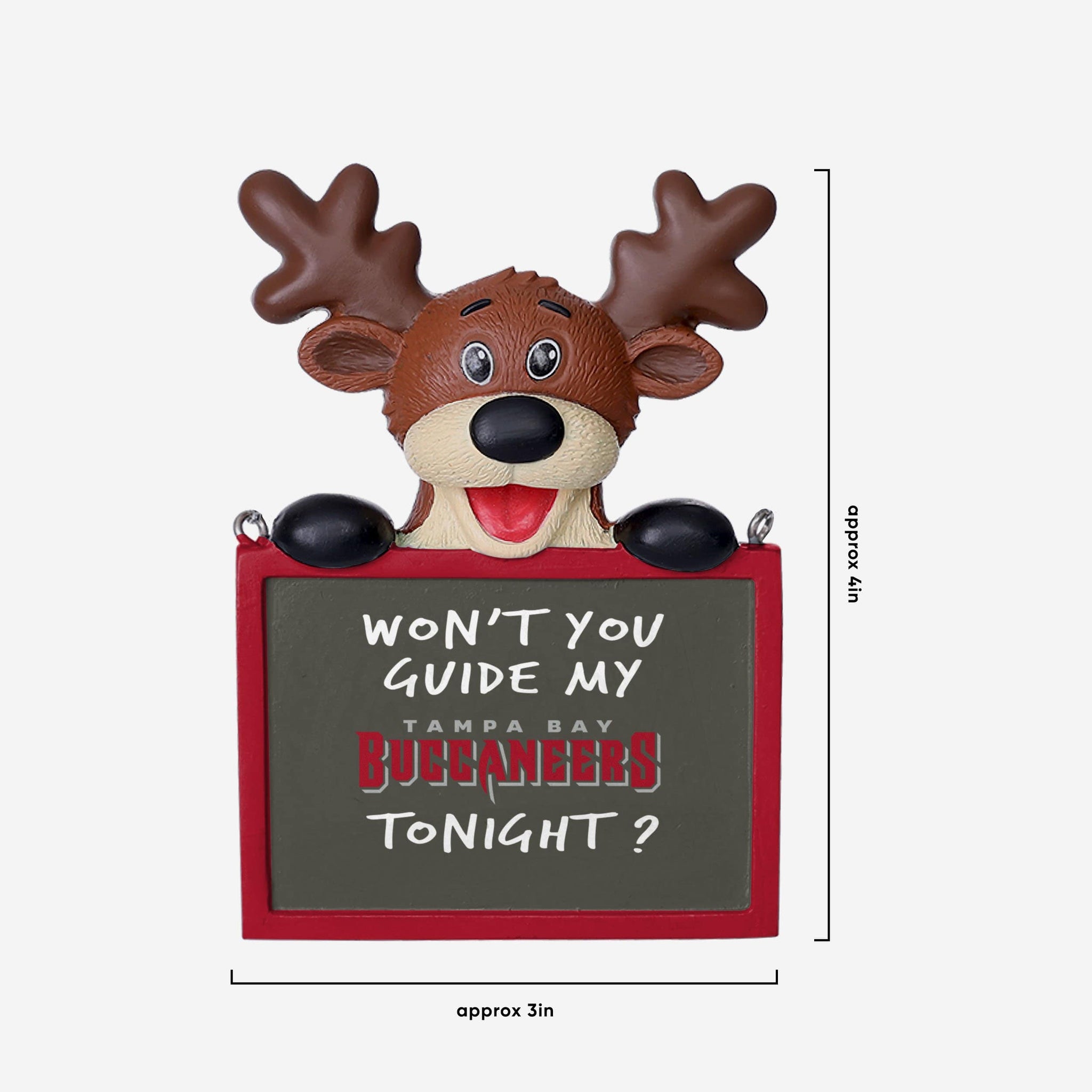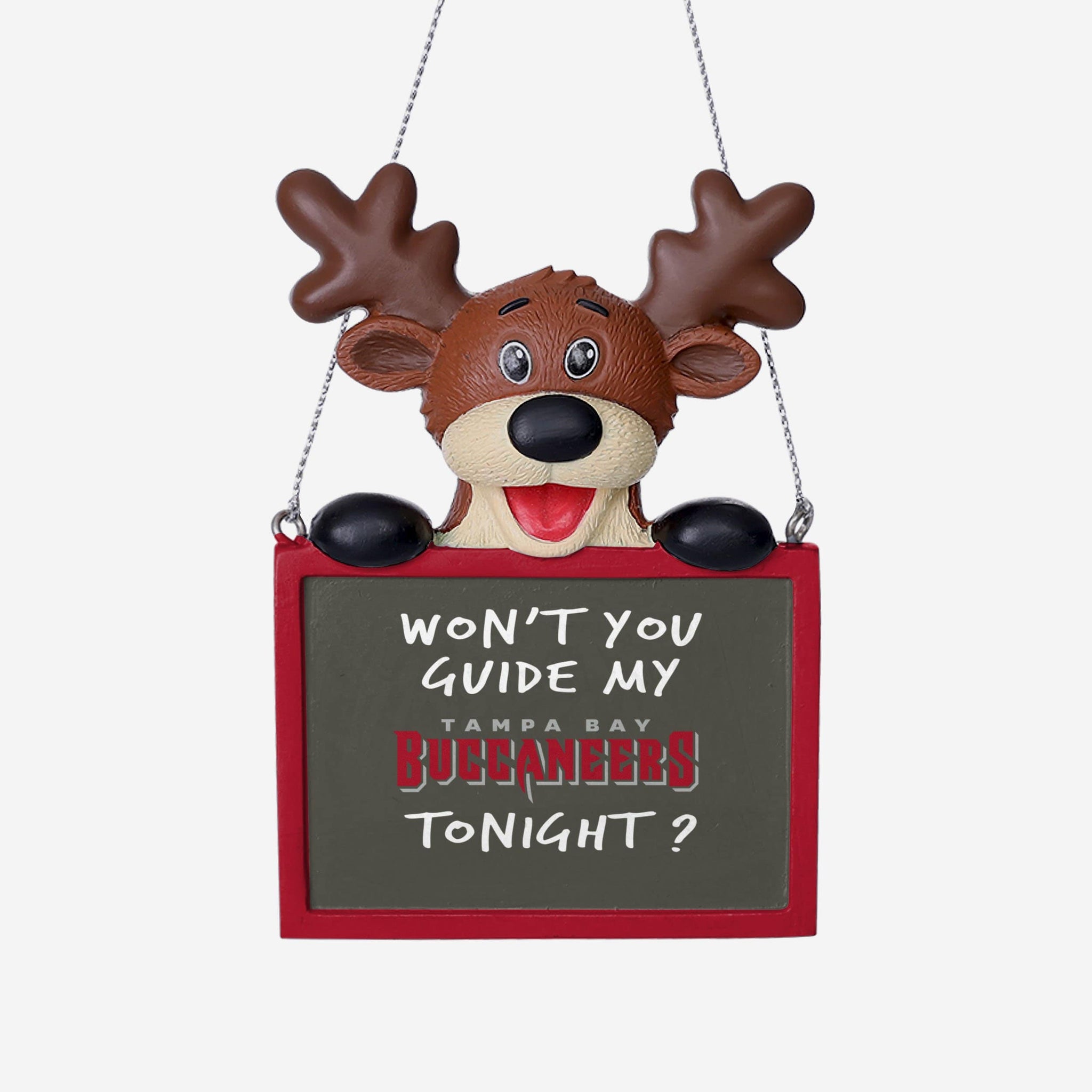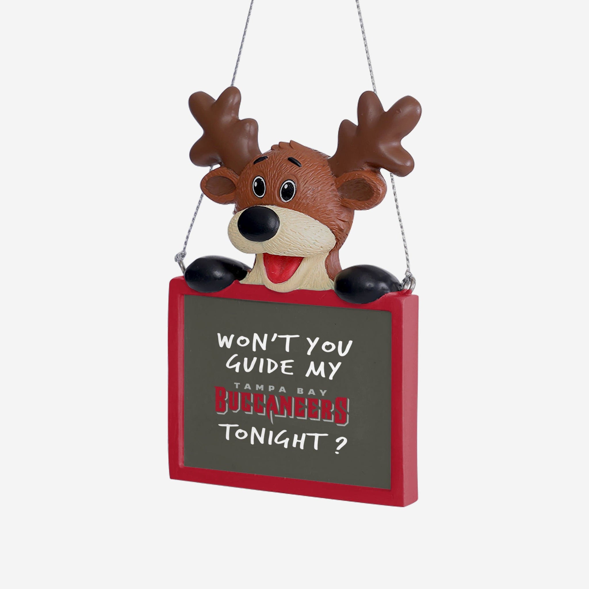 Tired: Dasher. Dancer. Prancer. Vixen. Wired: This Tampa Bay Buccaneers Reindeer with Sign Ornament.