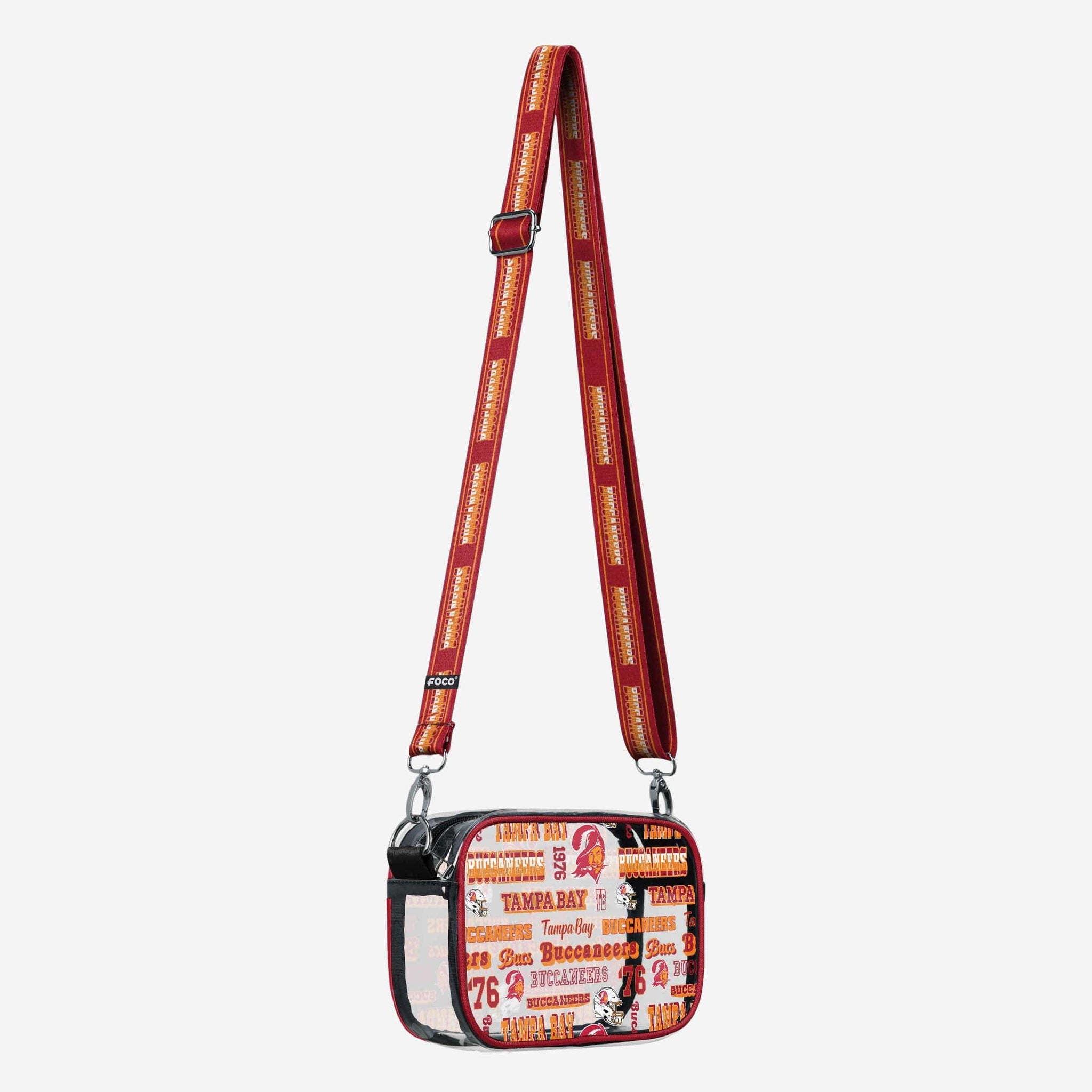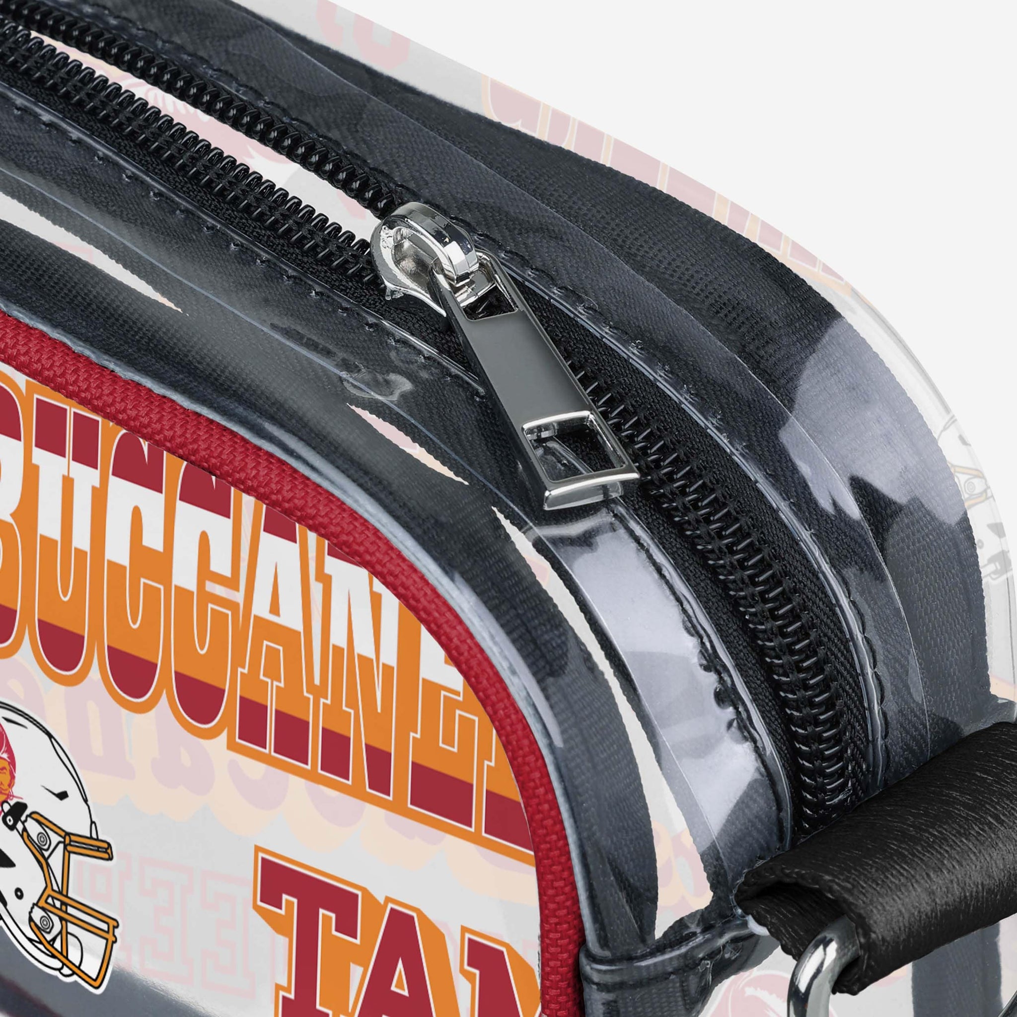 Over your shoulder and off to the game. Whether you're running errands on the town or running the tailgate in the parking lot, this Tampa Bay Buccaneers Repeat Retro Print Clear Crossbody Bag is the perfect way to carry the team like never before.