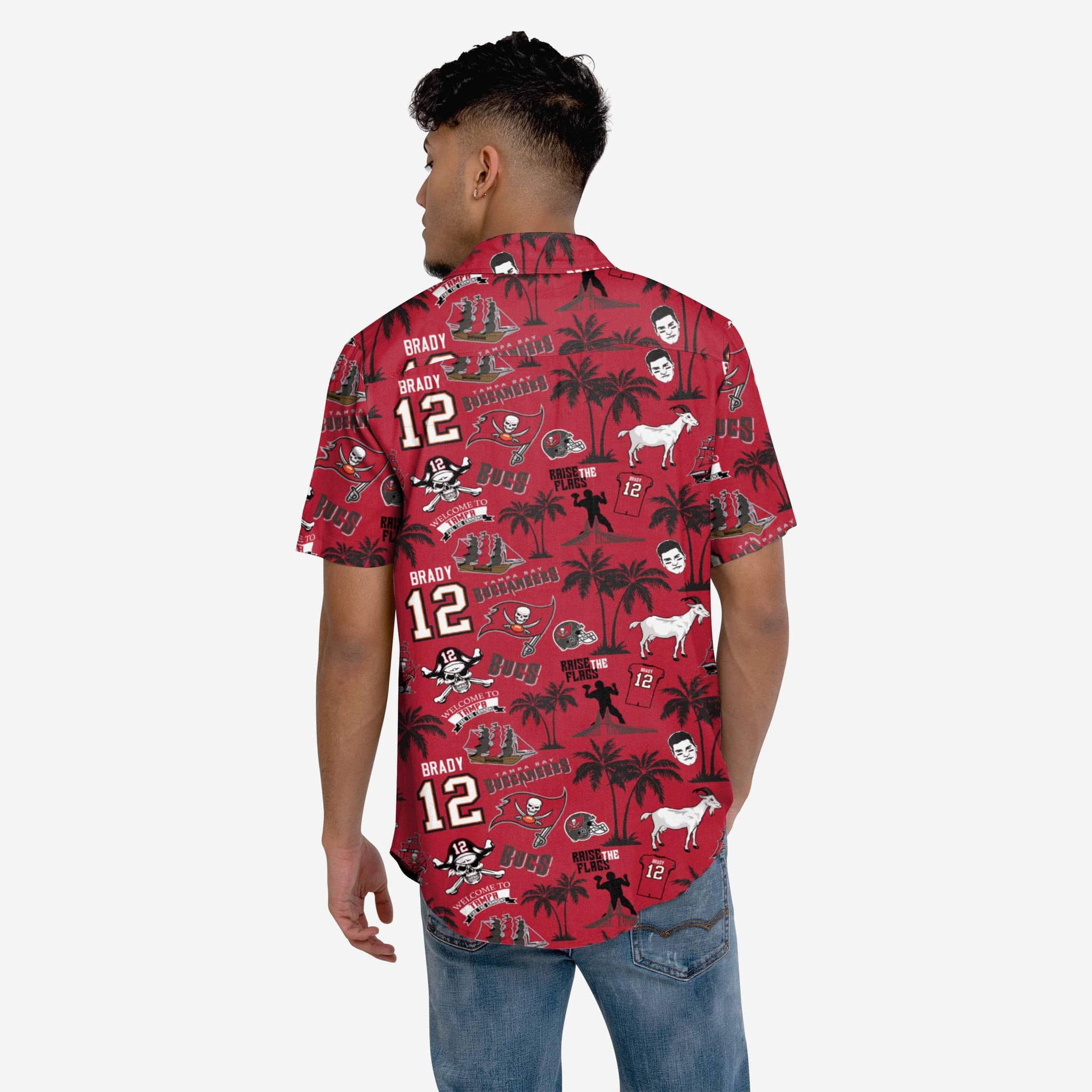 - Repeated thematic Brady and Buccaneers accents throughout, including team logo, jersey name and number, Brady face, goats, and pirate ships so you can rep your favorite player