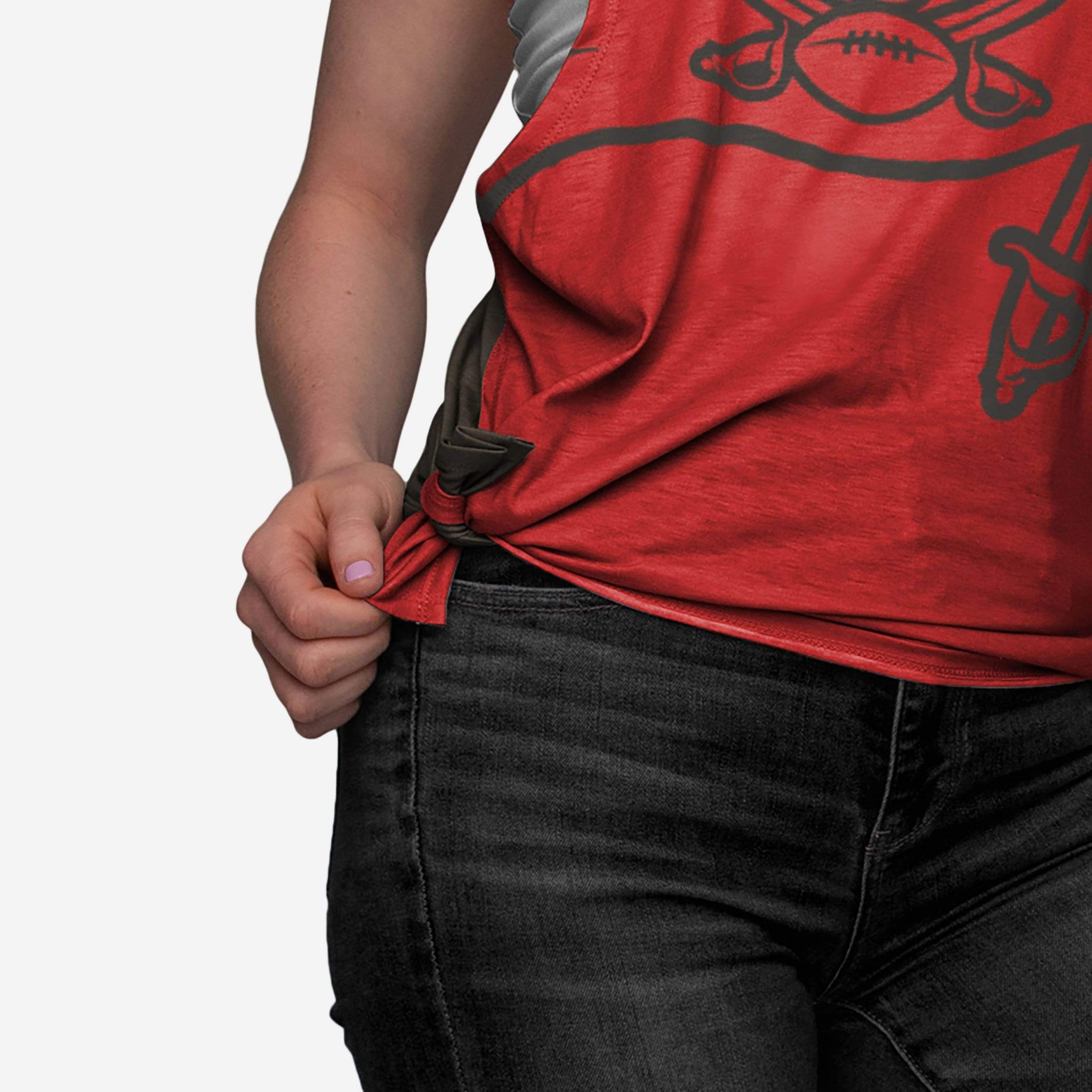 Bold fans like you need to boldly show off your fandom. That's where this Tampa Bay Buccaneers Women's Side-Tie Sleeveless Top comes in. It has your team colors on display on the front and the back, because two ways to show off your team spirit are better than one.