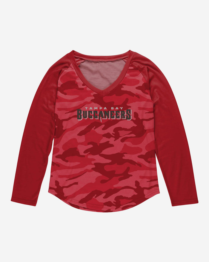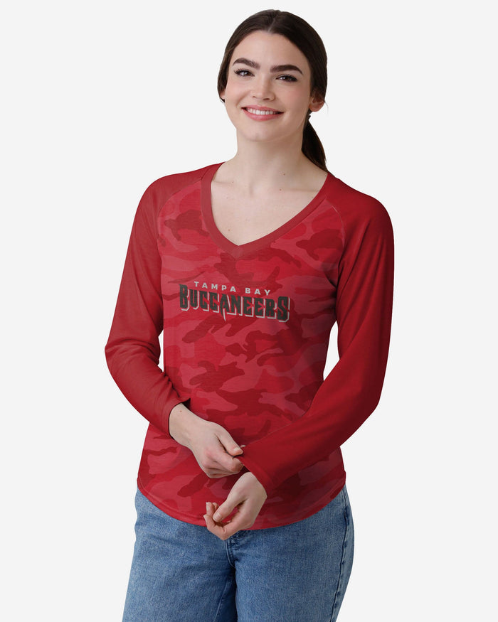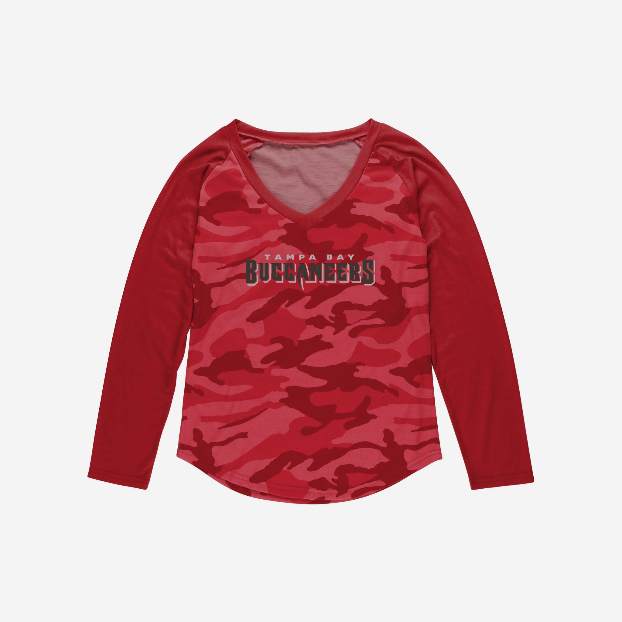 Despite its sleek camouflage design, when you're rocking this Tampa Bay Buccaneers Women's Wordmark Tonal Camo Raglan T-Shirt, you won't blend in with the crowd - You'll stand out.