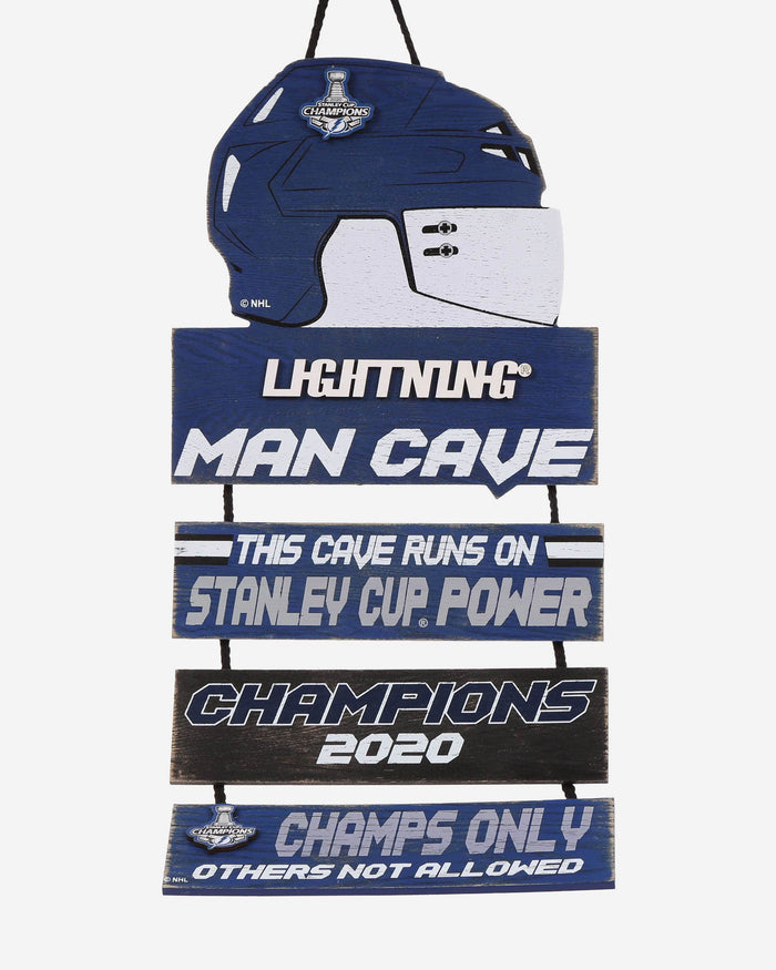 Whenever you host your friends and family, they'll know they're in the home of a champion with this Tampa Bay Lightning 2020 Stanley Cup Champions Helmet Mancave Sign proudly displayed on your wall!