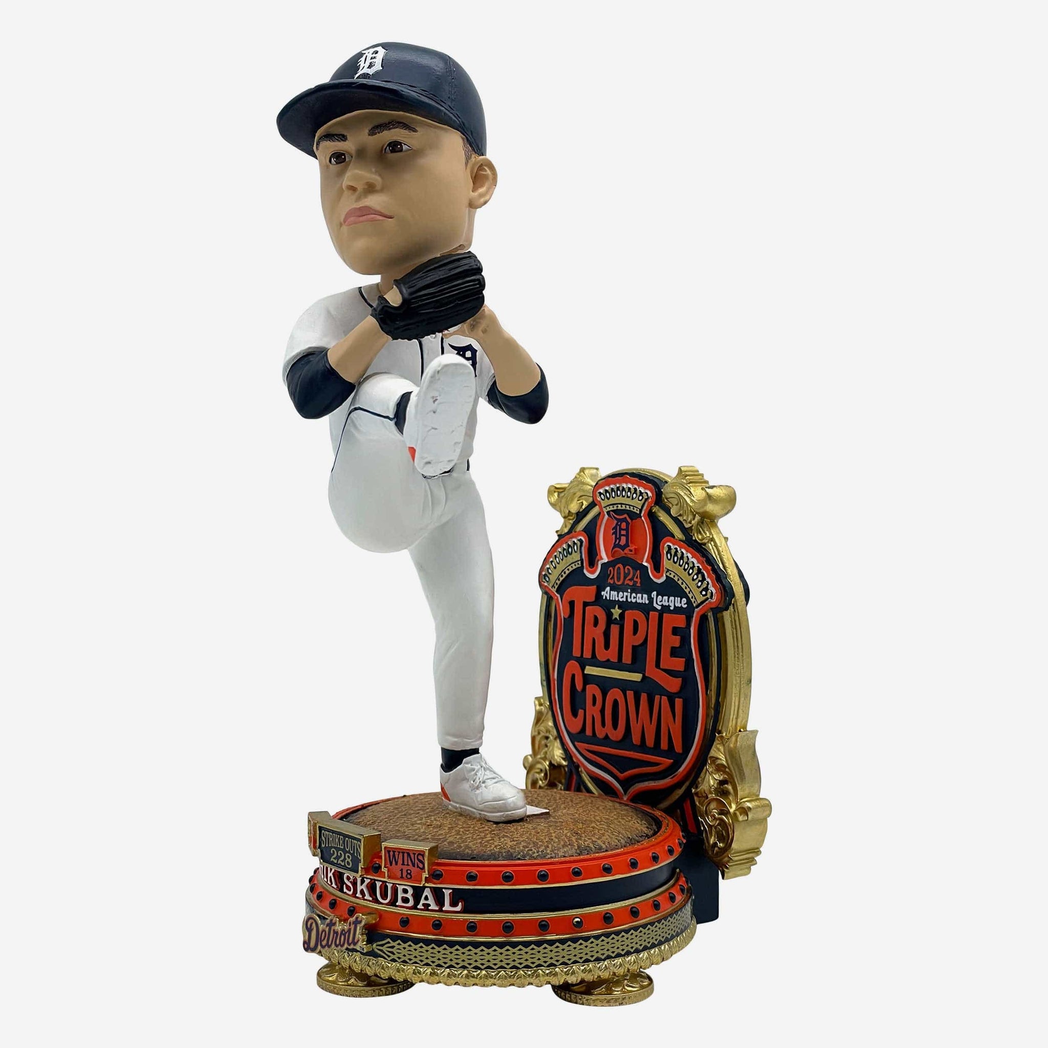 228 Strikeouts. 18 wins. 2.39 ERA. Crown the king of the mound in your collection with this Tarik Skubal Detroit Tigers 2024 Triple Crown Bobblehead.