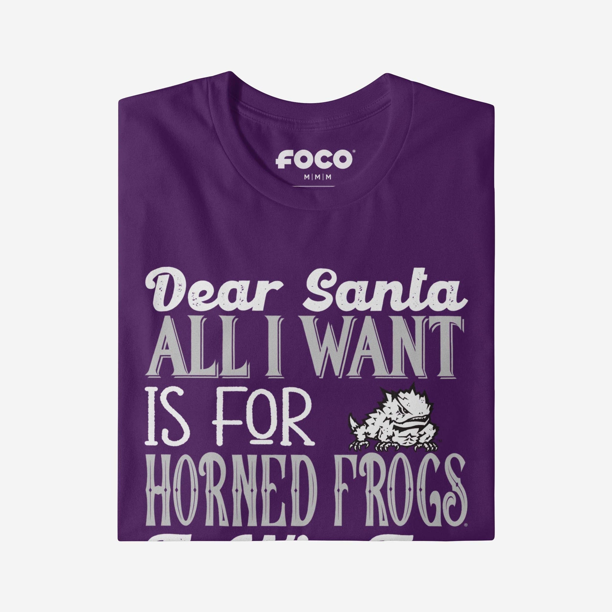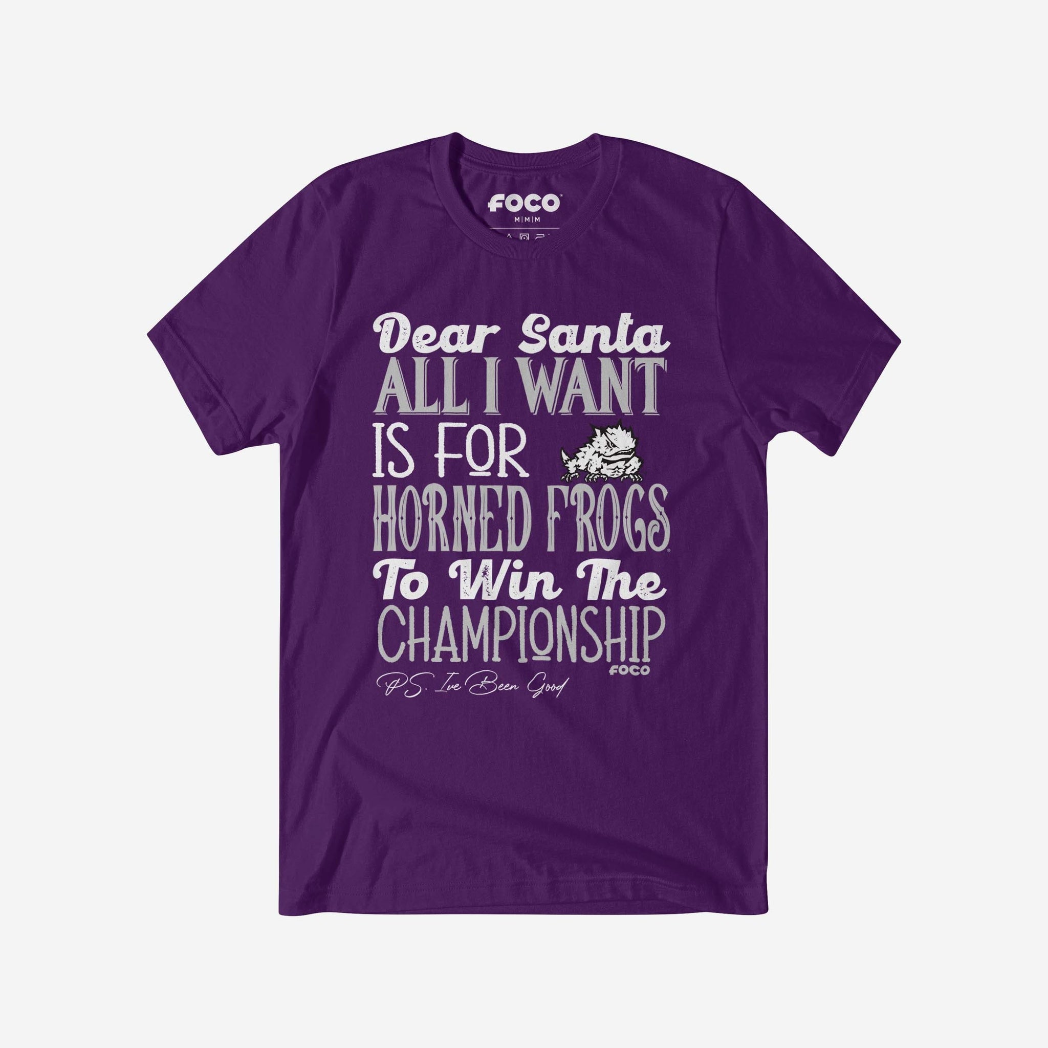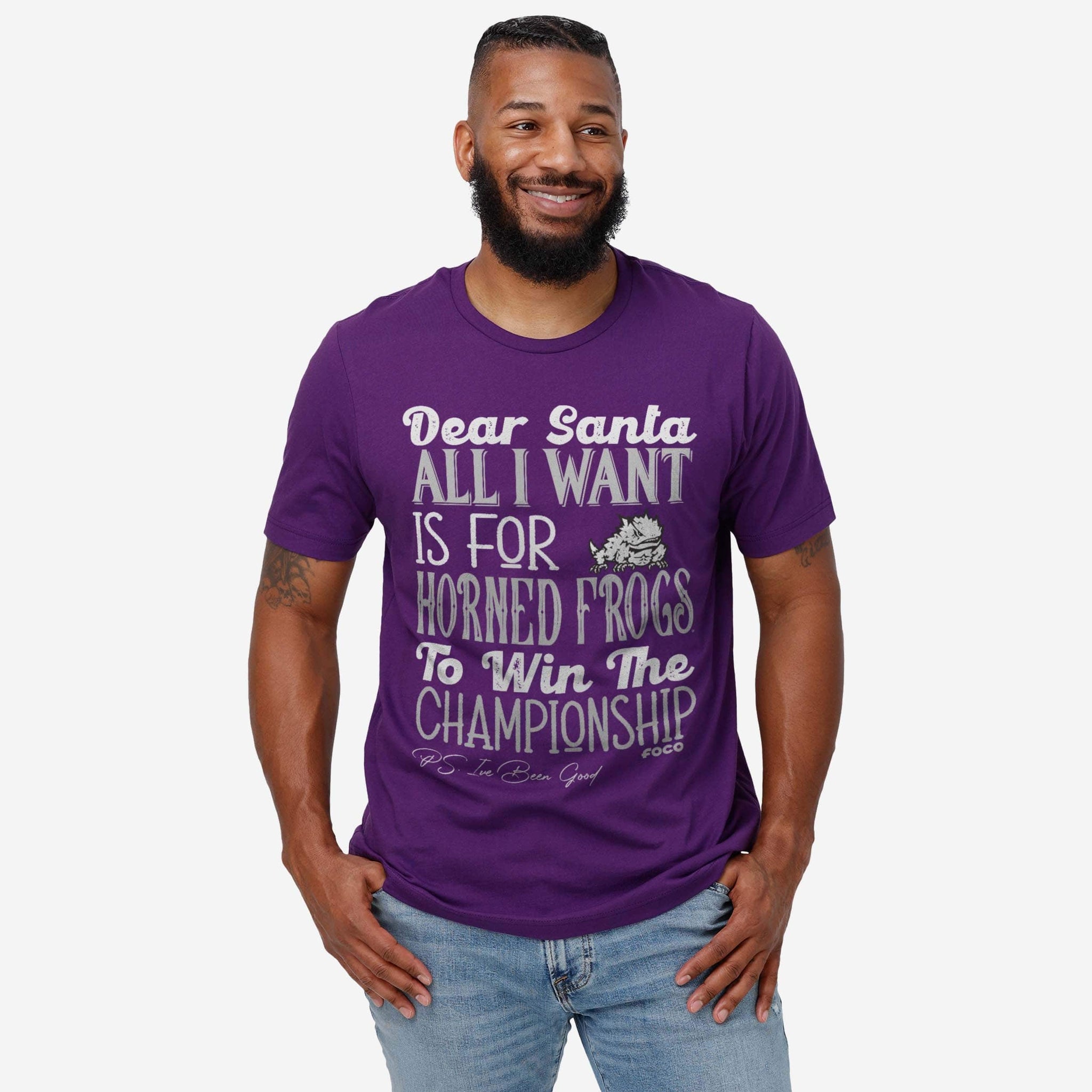 Superfans like you are all about dreaming big. That’s why the gift at the top of your list this season won’t fit in a stocking or even under the tree – A championship is a lot bigger than that. Make sure Saint Nick knows what you’re hoping for this holiday season by rocking this TCU Horned Frogs All I Want T-Shirt. This way, he knows you’re on the “nice” list. He won’t even have to check it twice.