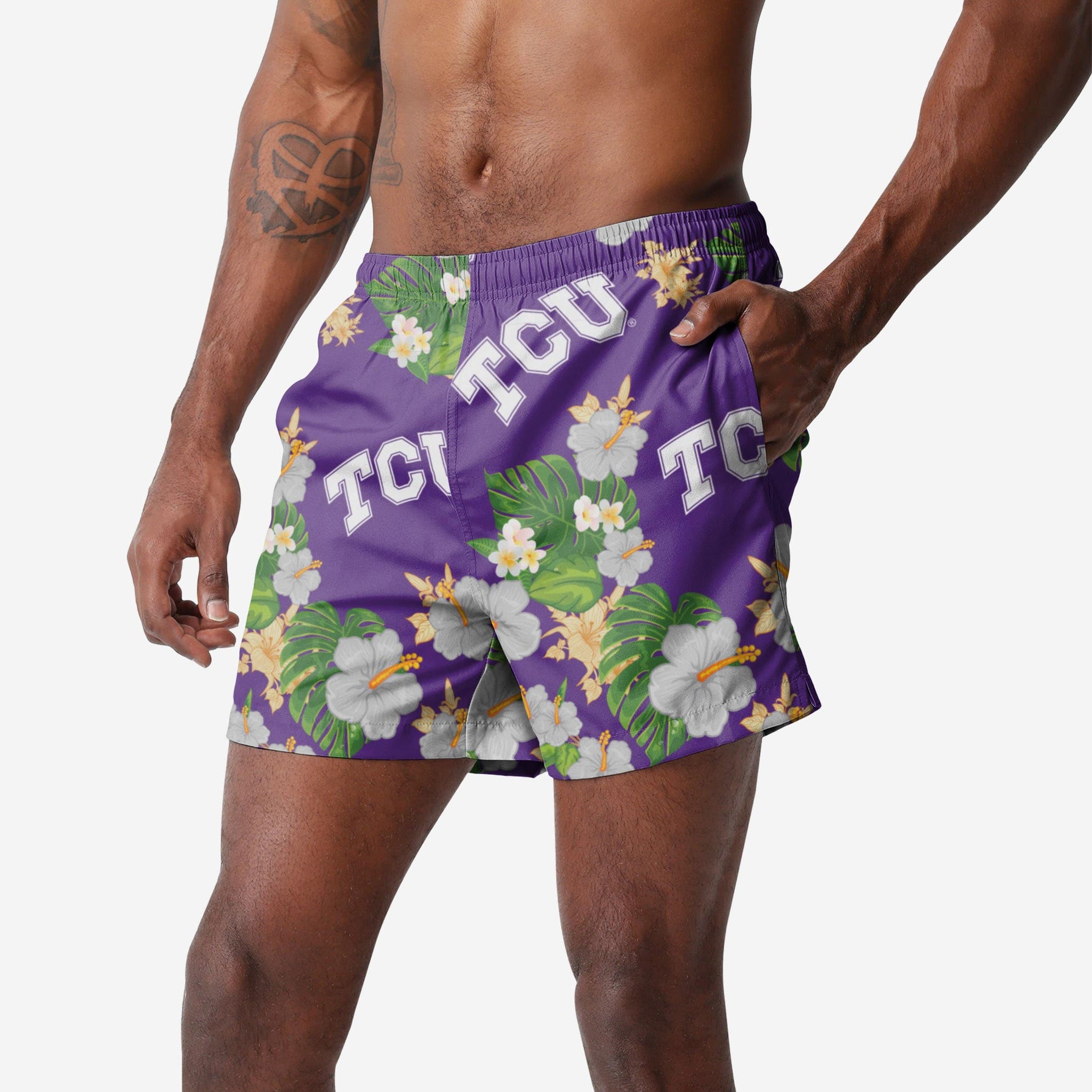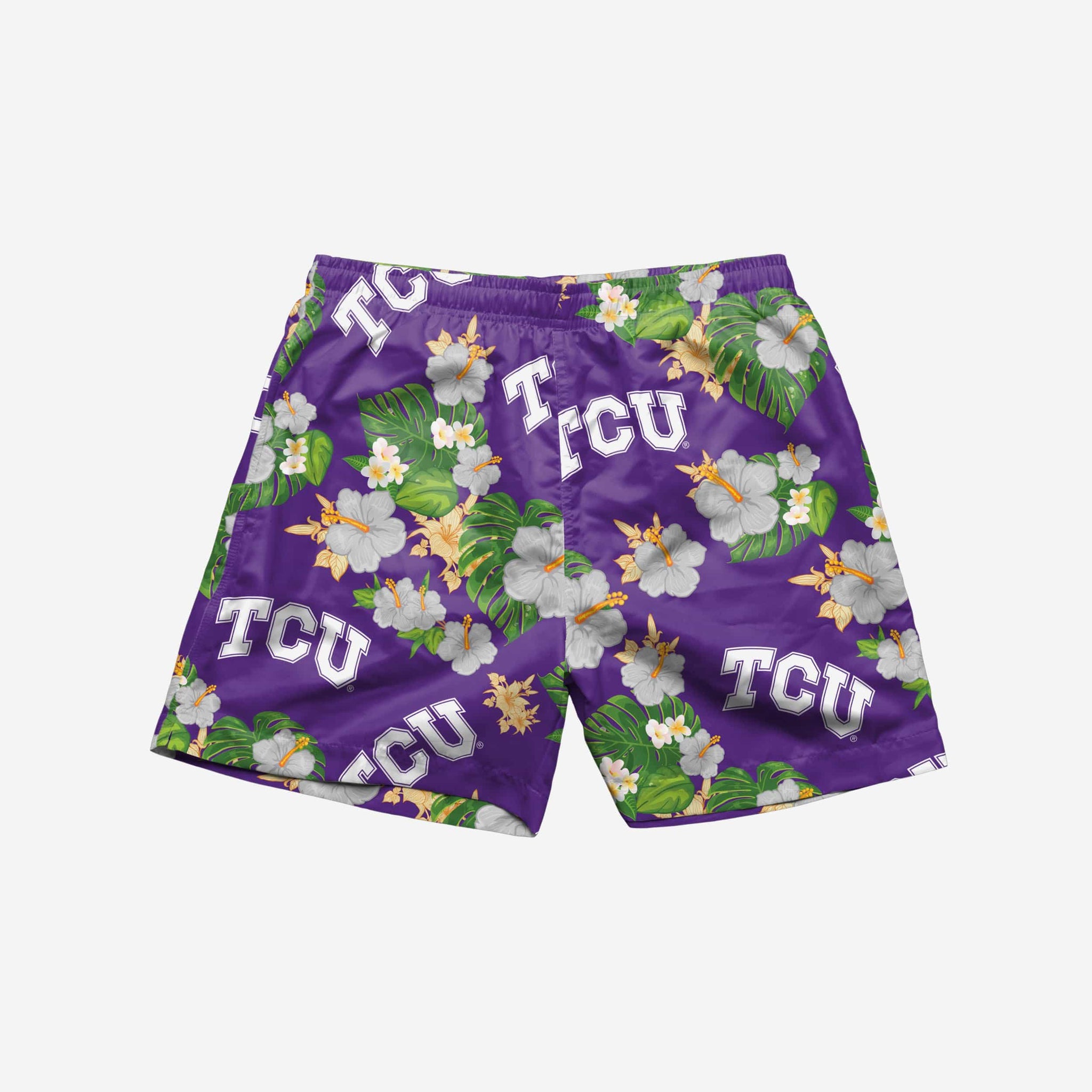 The only thing better than taking a dip in the pool on a hot day is doing so while showing off your one-of-a-kind team spirit. That's why we made these TCU Horned Frogs Floral Swimming Trunks.
