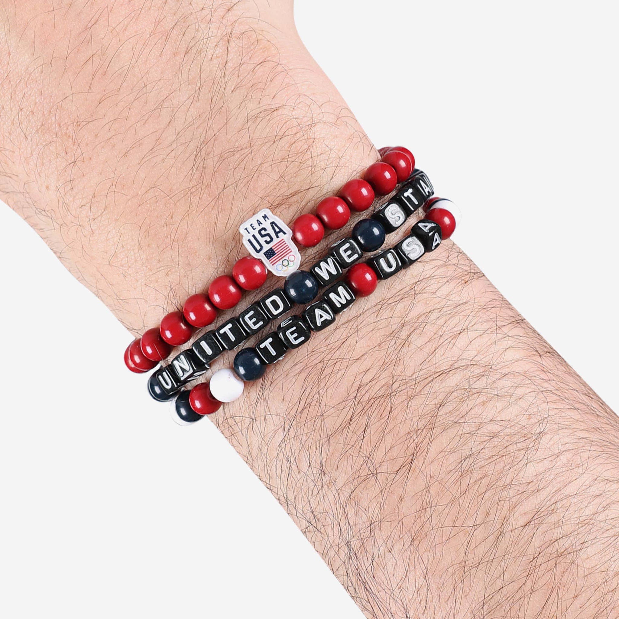 A whole new way to rep the team in style is here. Step up your fan fashion sense with this Team USA 3 Pack Beaded Friendship Bracelet. These matching friendship bracelets have an all-over team-colored design and team logo displays, which makes them the perfect way to show your support for Team USA on gamedays and every day in between.