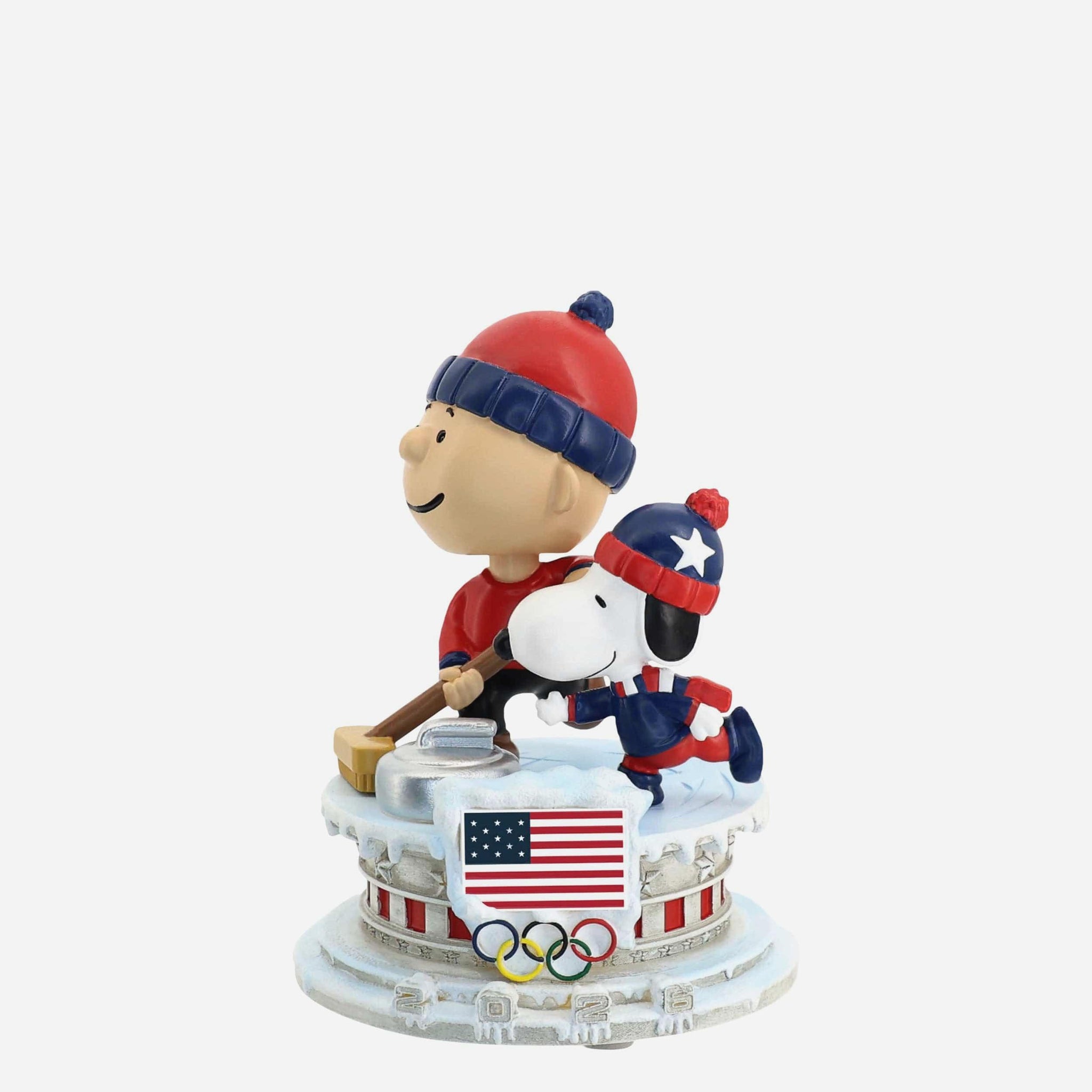 Sweep your way into Team USA spirit with this Team USA Charlie Brown & Snoopy Peanuts Curling Mini Bobblehead Scene, bringing classic Peanuts charm to the ice in Olympic-inspired style.