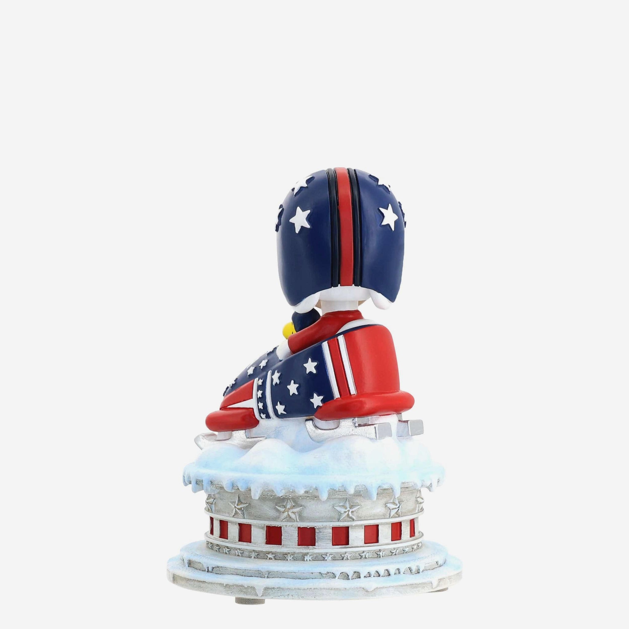Bring Olympic spirit and Peanuts charm together with this Team USA Snoopy & Woodstock Peanuts Bobsled Mini Bobblehead Scene, featuring the beloved duo racing toward gold in red, white, and blue style.