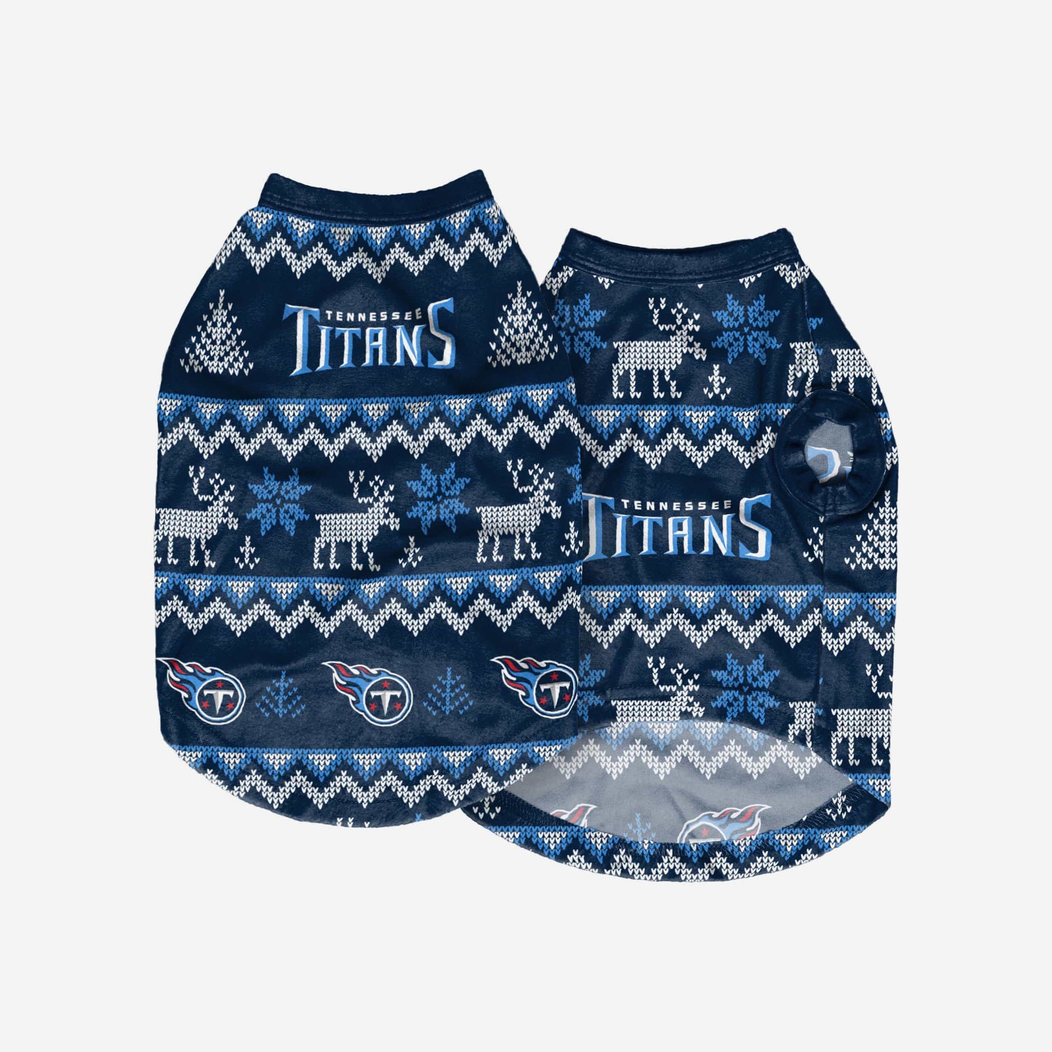 Show off your pet's holiday spirit with this dog sweater! Your good boy (or girl) will love this Tennessee Titans Dog Family Holiday Ugly Sweater so much, they'll be saying WOOF BARK AWOOO (that's THANK YOU in pup language). Don't forget to match your canine's sweater with a set of matching holiday pajamas!