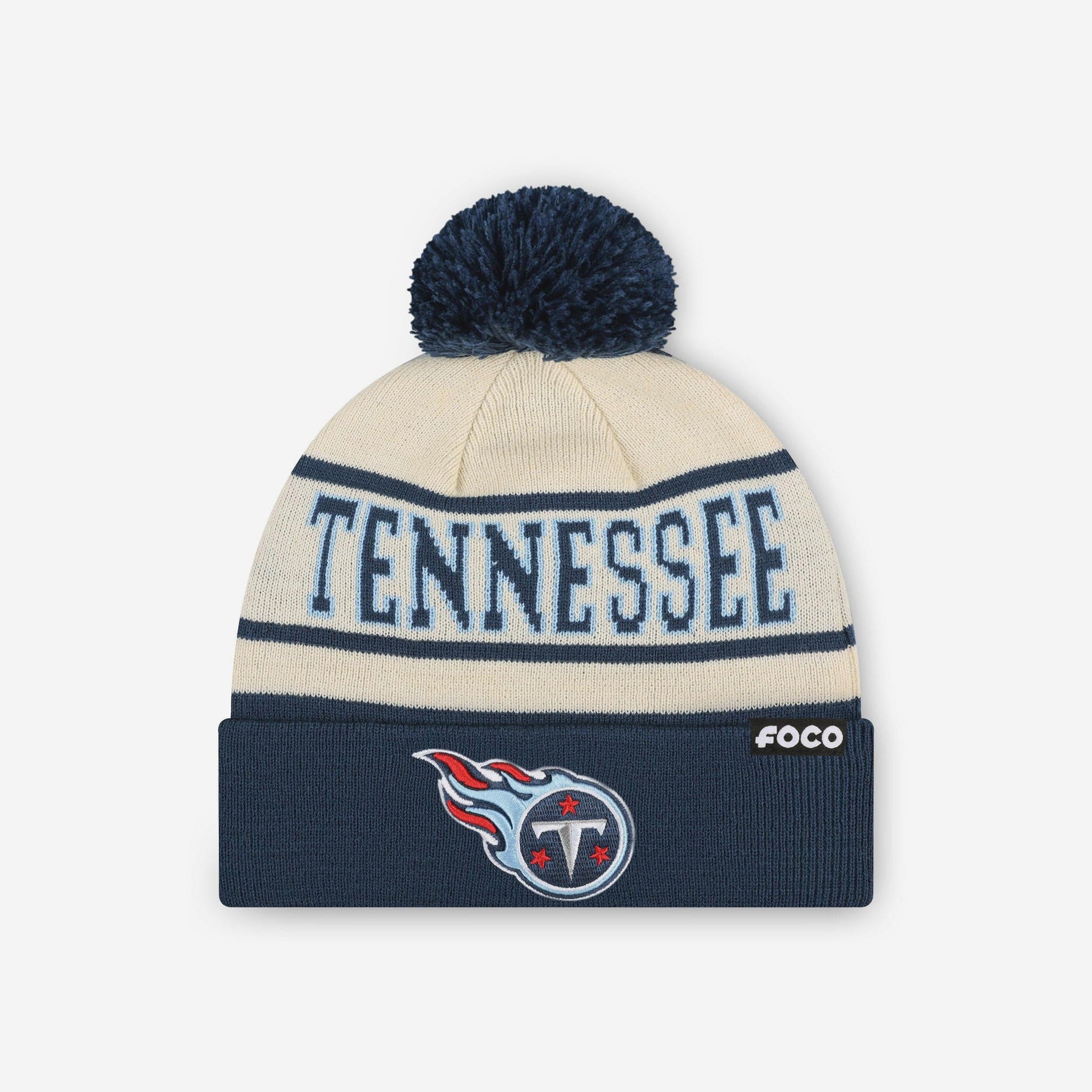 Tennessee Titans Heritage Stripe Primary Logo Pom Beanie FOCO - FOCO.com