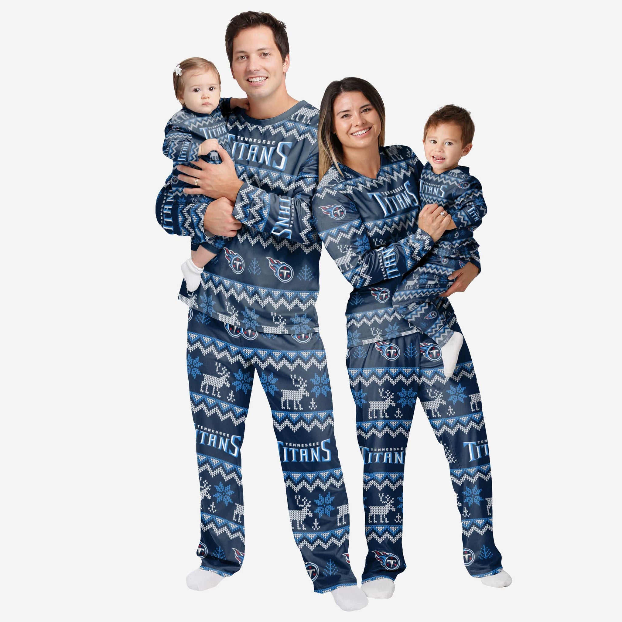 Get your young fan started early this holiday season in these Tennessee Titans Infant Ugly Pattern Family Holiday Pajamas! Your baby will absolutely love these matching Christmas pajamas! Make sure your infant enjoys sweet dreams filled with holiday joy by having them sleep in infant pajamas. Don’t forget to take your holiday photo with the whole family wearing matching Christmas pajamas!