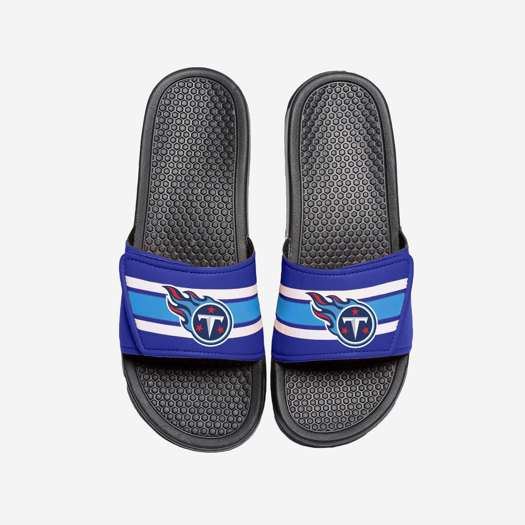 They say to always put your best foot forward in life. But both of your feet will look so good in these Tennessee Titans Stripe Legacy Velcro Sport Slides that you might have a hard time determining which one is your best foot. Good problem to have.