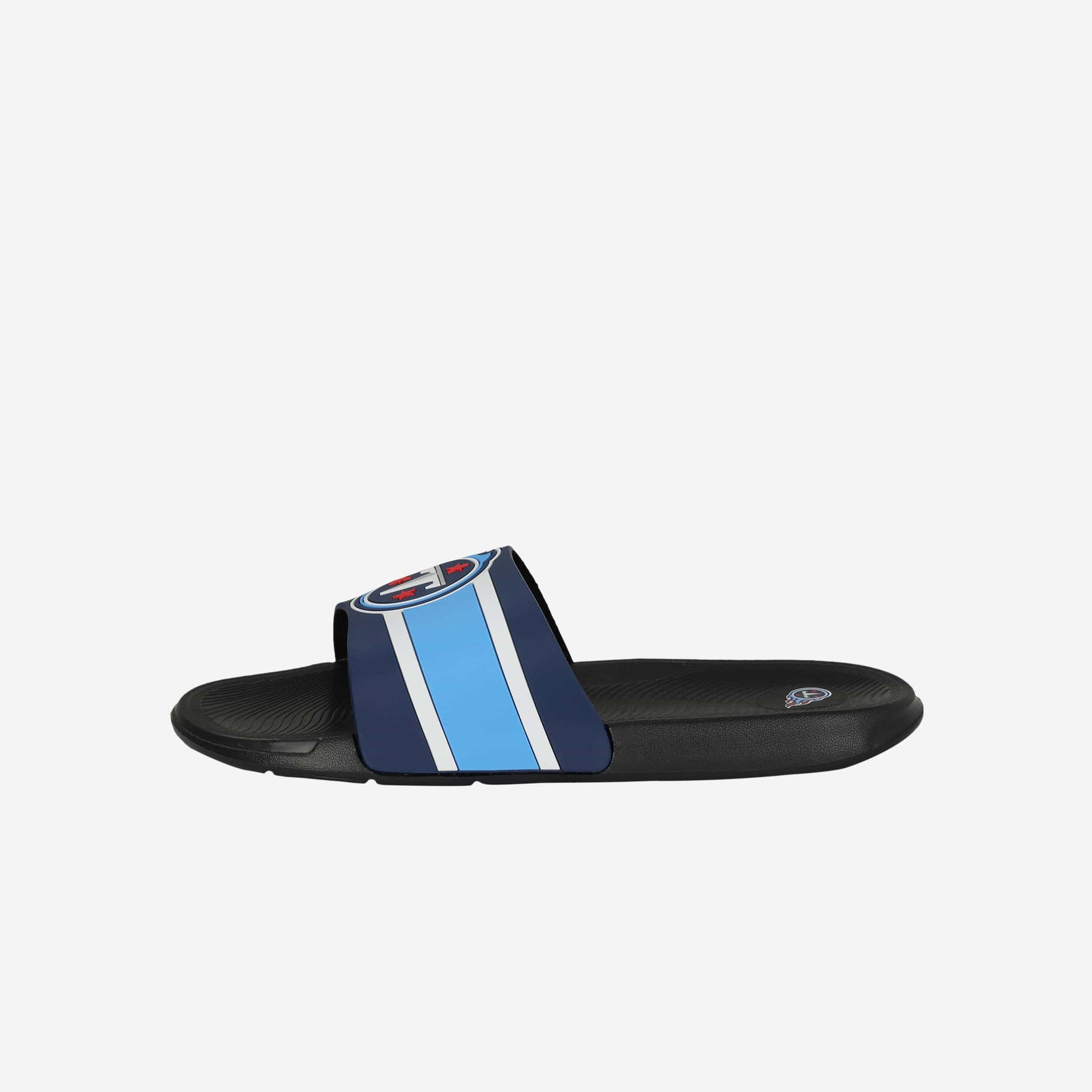 These Tennessee Titans Striped Big Logo Raised Slides give a whole new meaning to the idea of putting some pep in your step.