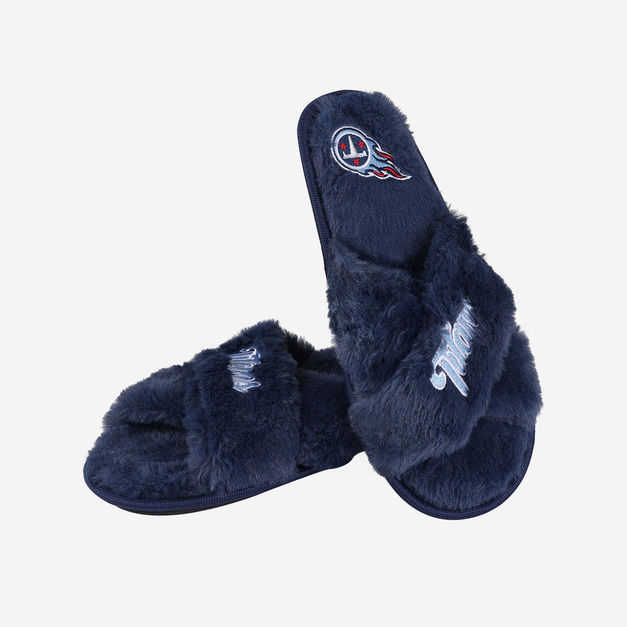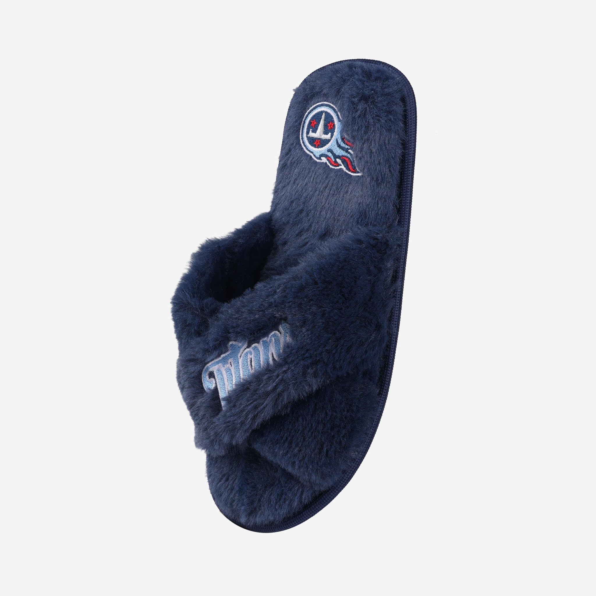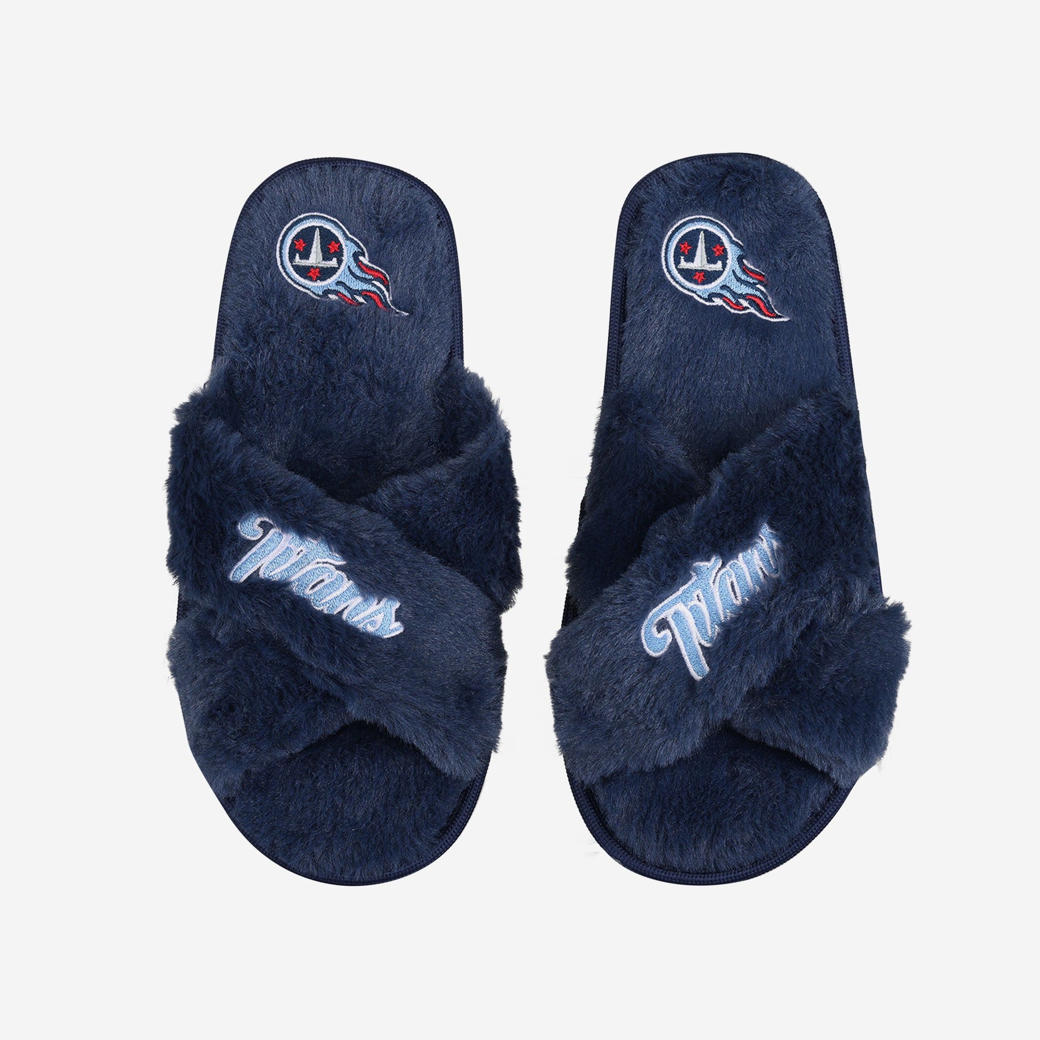 Slip in to something fuzzy, festive, and oh, so fan-tastic on your relaxing days at home. These Tennessee Titans Women's Script Wordmark Fur Cross Slides are the best way to rep the team while you kick back and watch the game on TV.