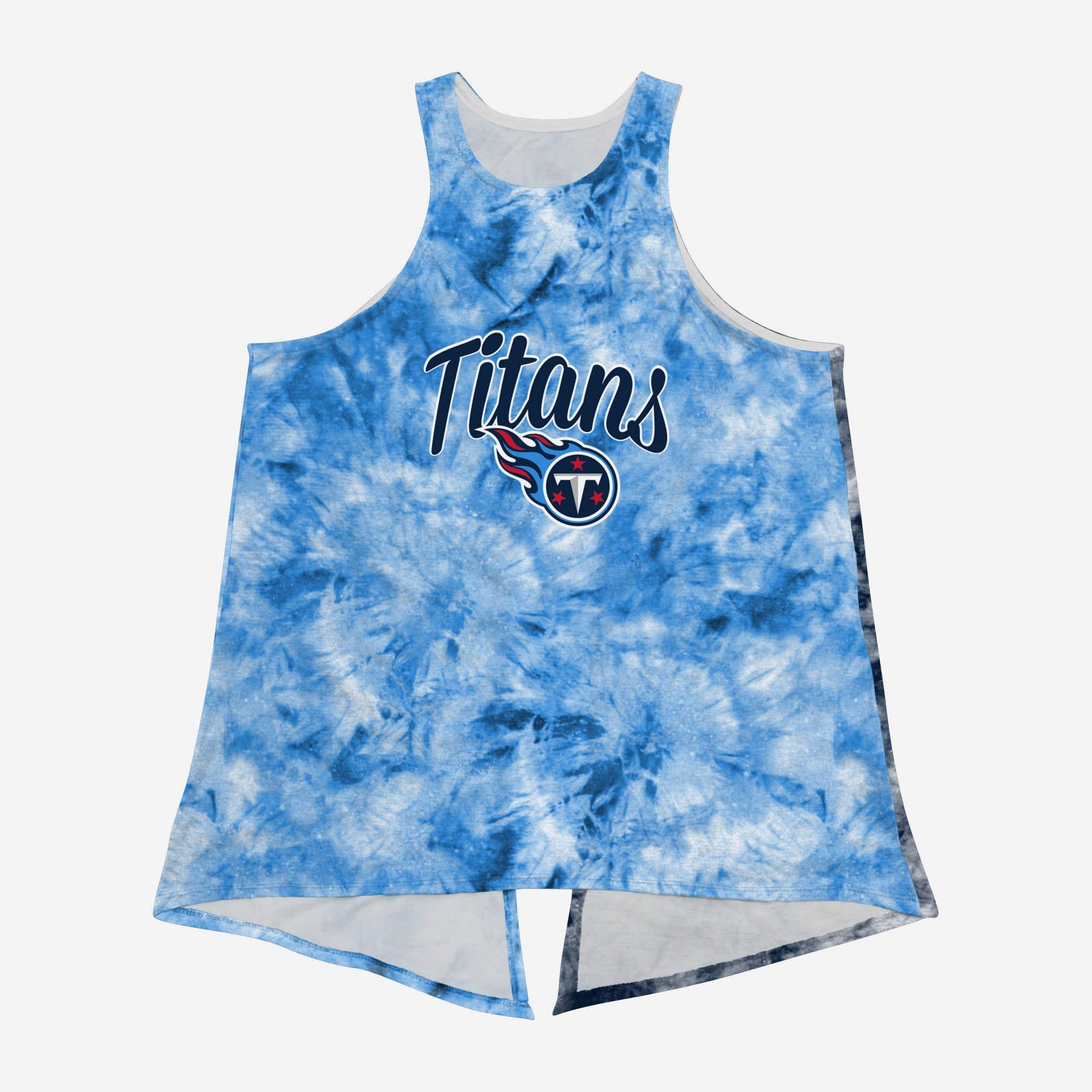 Flip the script and tie some team spirit into your beach day fan fit with this Tennessee Titans Women's Script Wordmark Tie-Dye Tie-Breaker Sleeveless Top.
