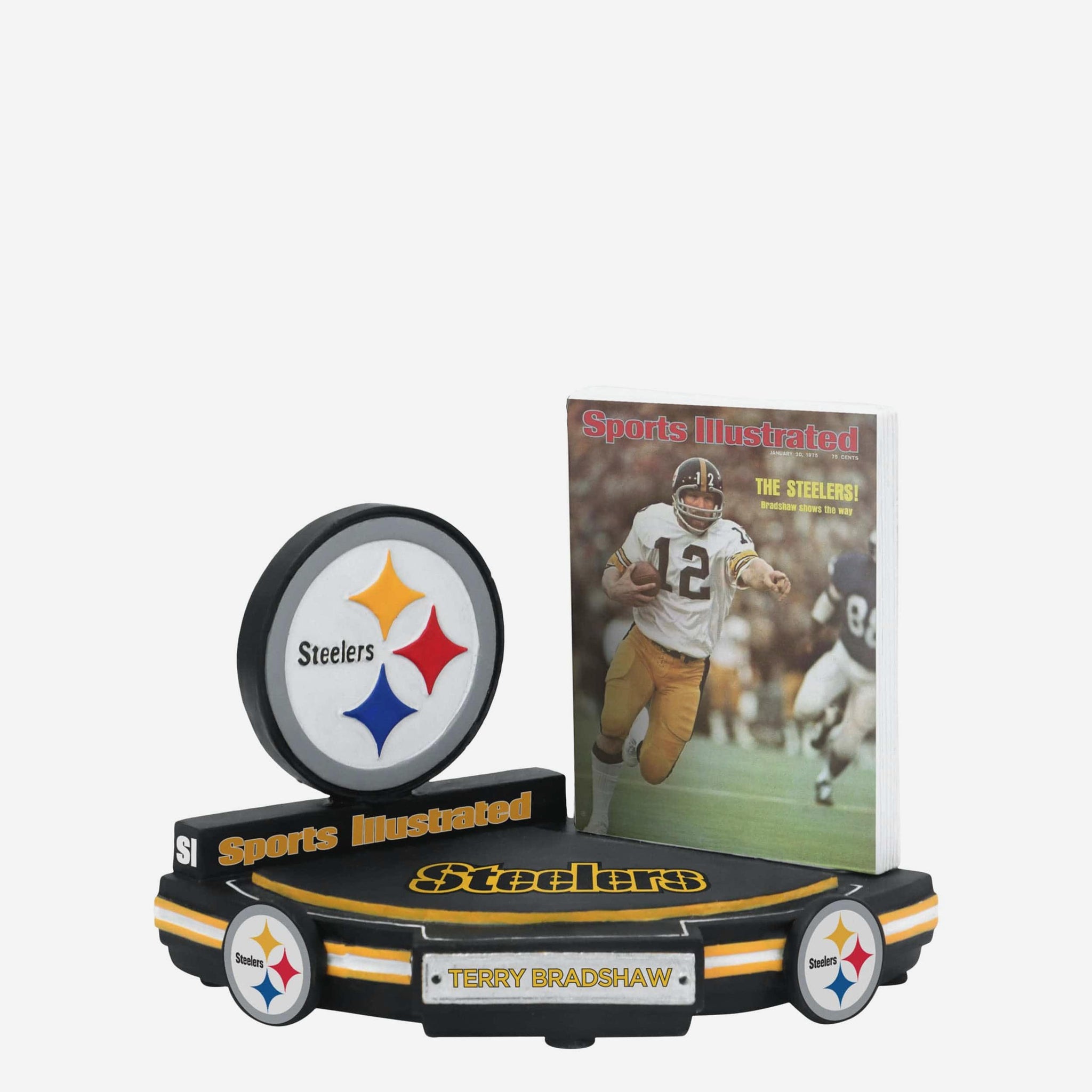 January 1975: The Blonde Bomber graces the cover of Sports Illustrated. Immortalize a Steel City legend in your collection with this Terry Bradshaw Pittsburgh Steelers Shows The Way Sports Illustrated Cover Bobblehead.
