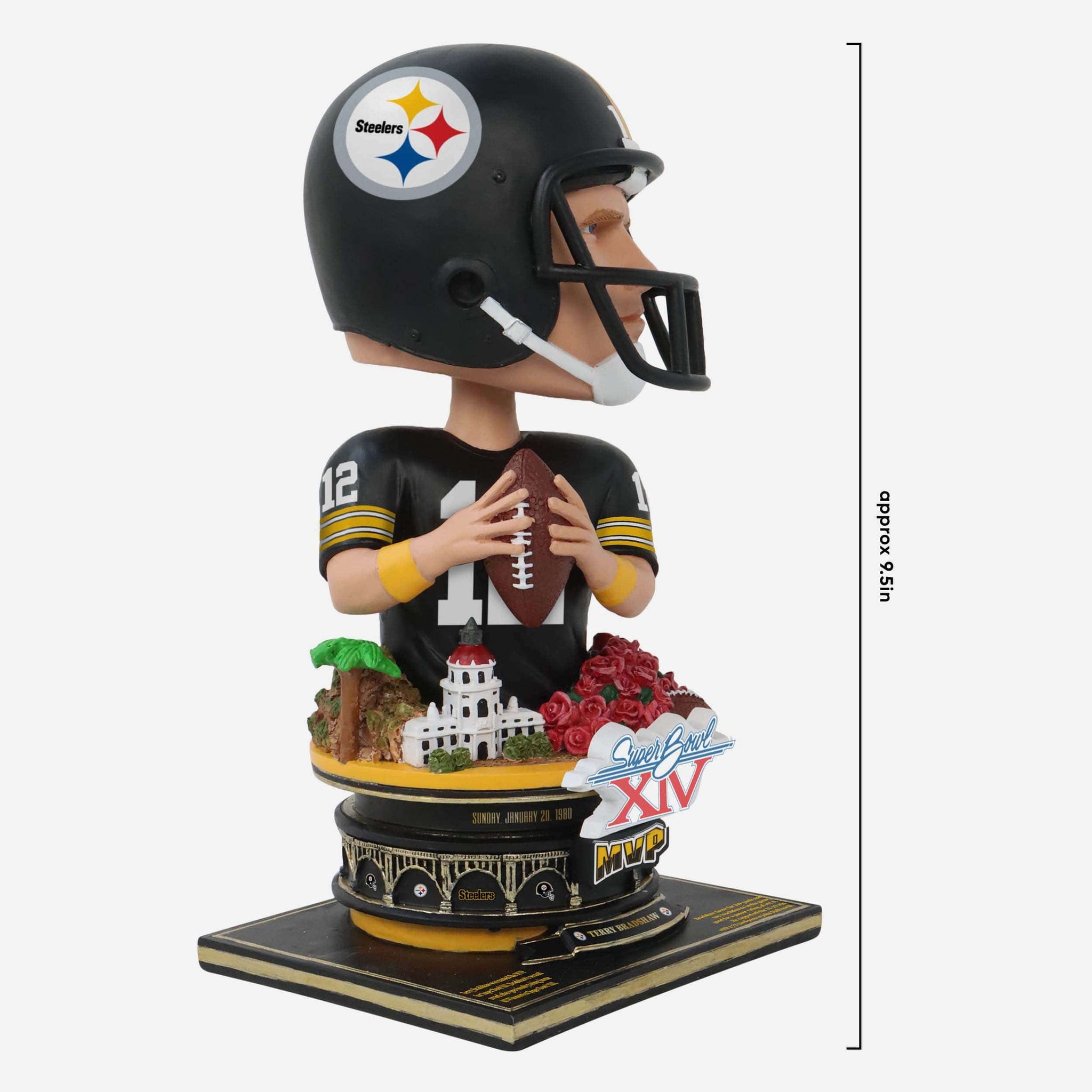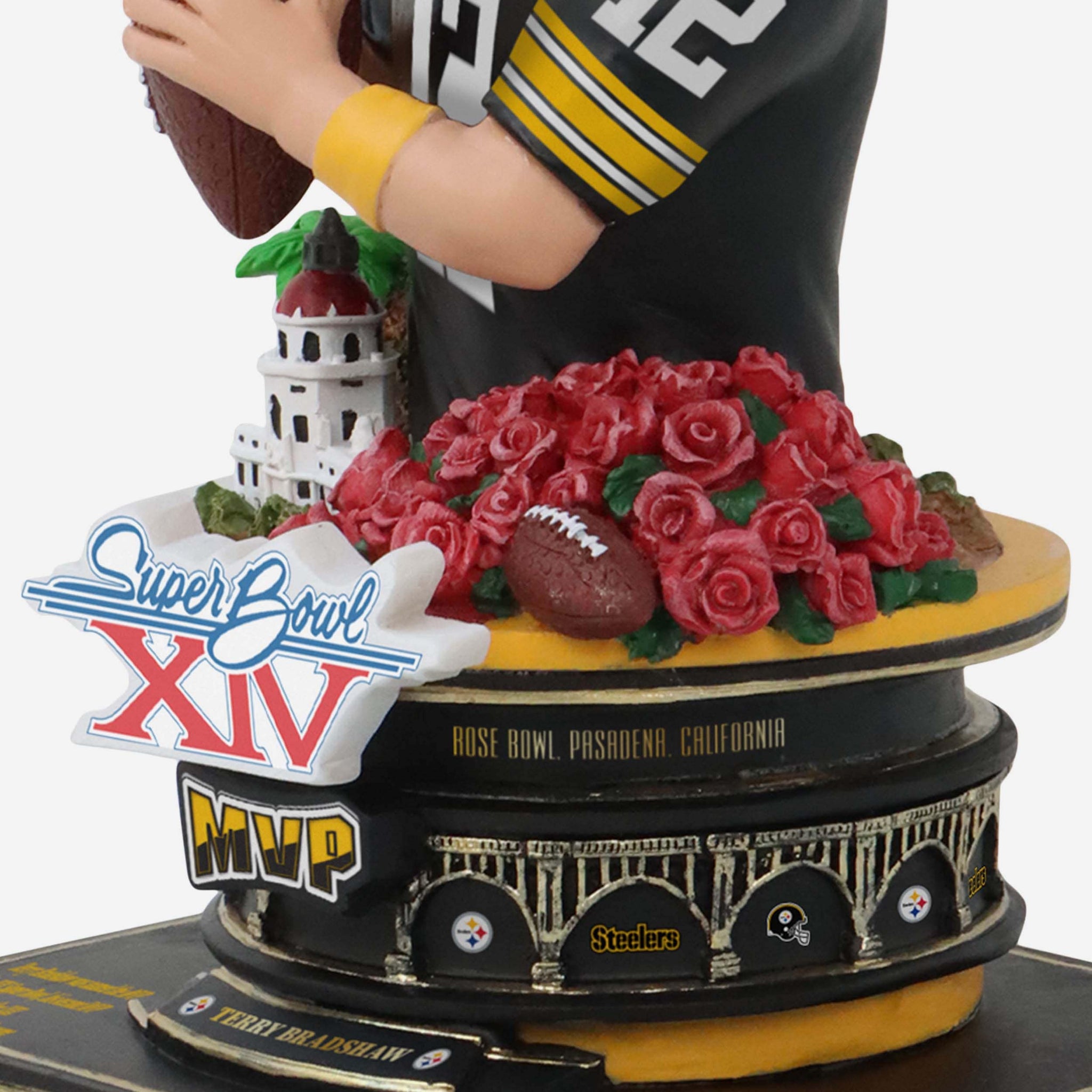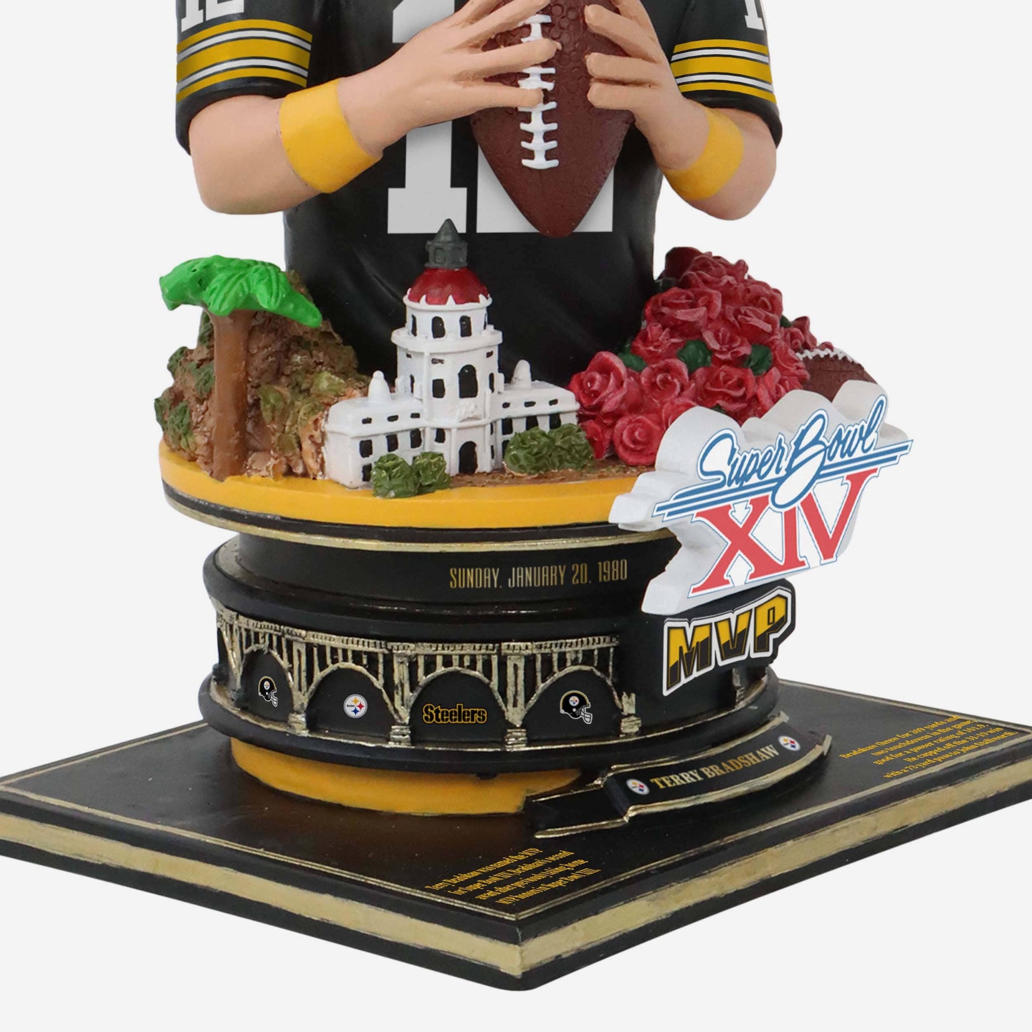 M-V-P! M-V-P! Turn back the clock and show off a "Super" player from the past with this Terry Bradshaw Pittsburgh Steelers Super Bowl XIV MVP Bust Bighead Bobblehead.