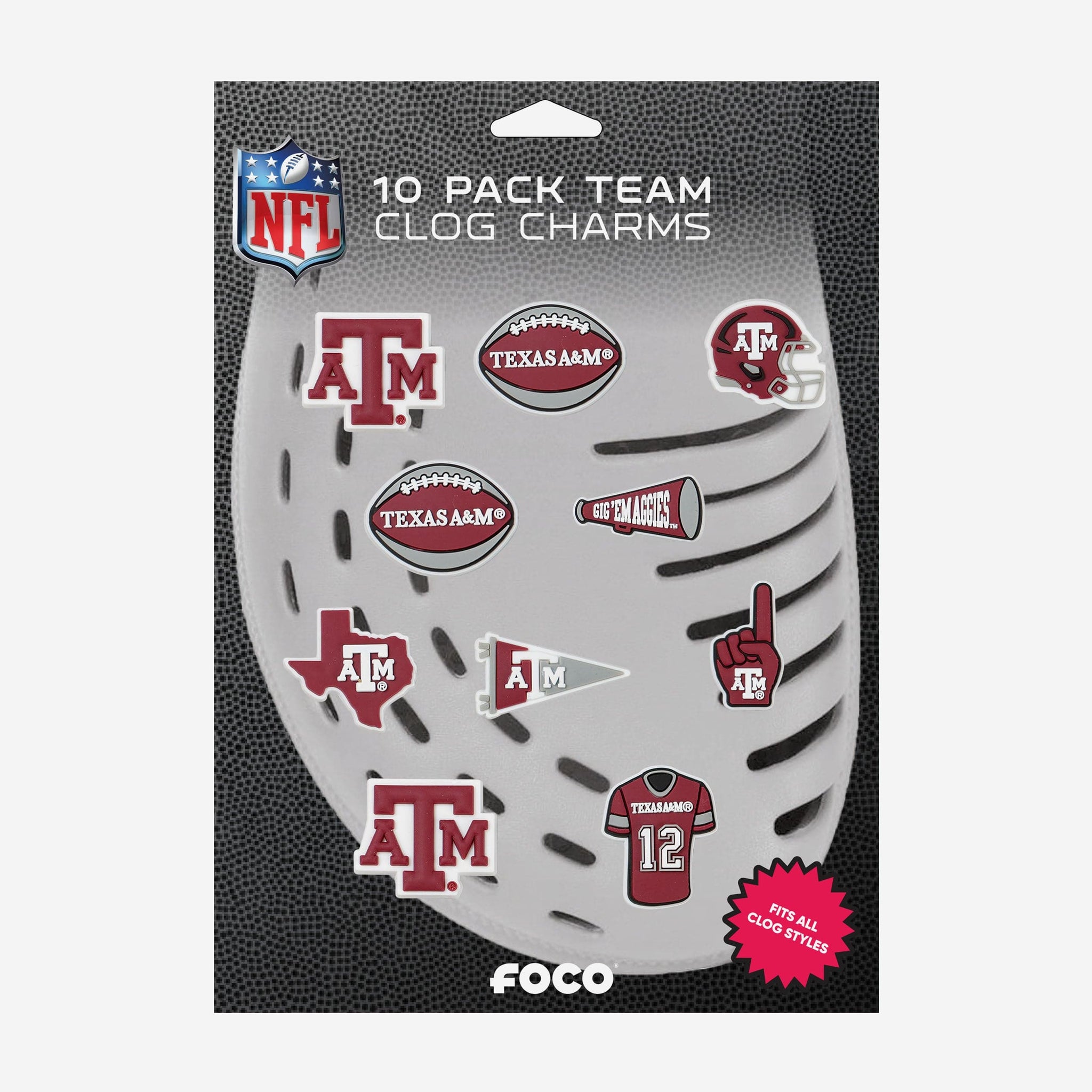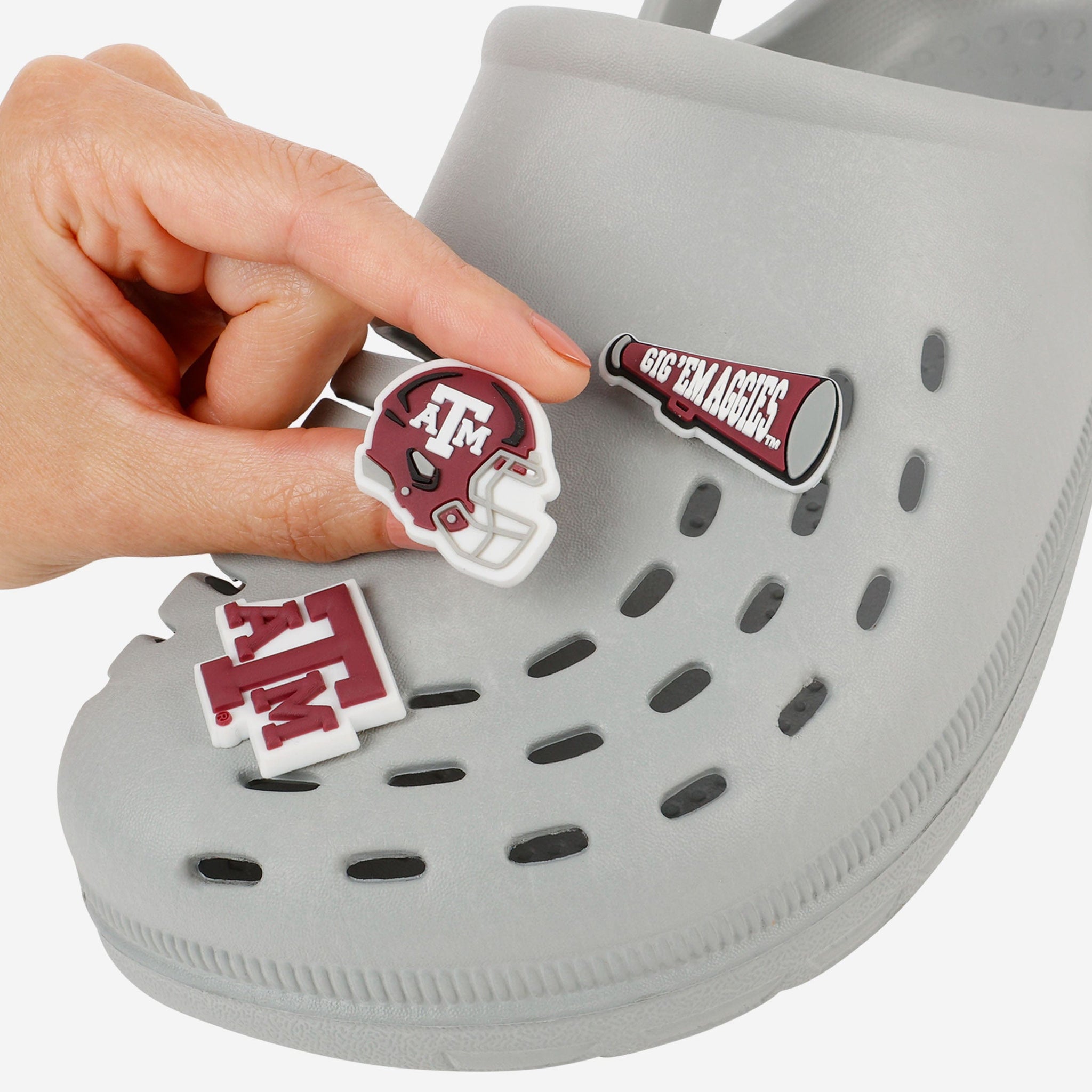 These Texas A&M Aggies 10 Pack Team Clog Charms are a perfect ten. Step up your clog style game in a whole new way.