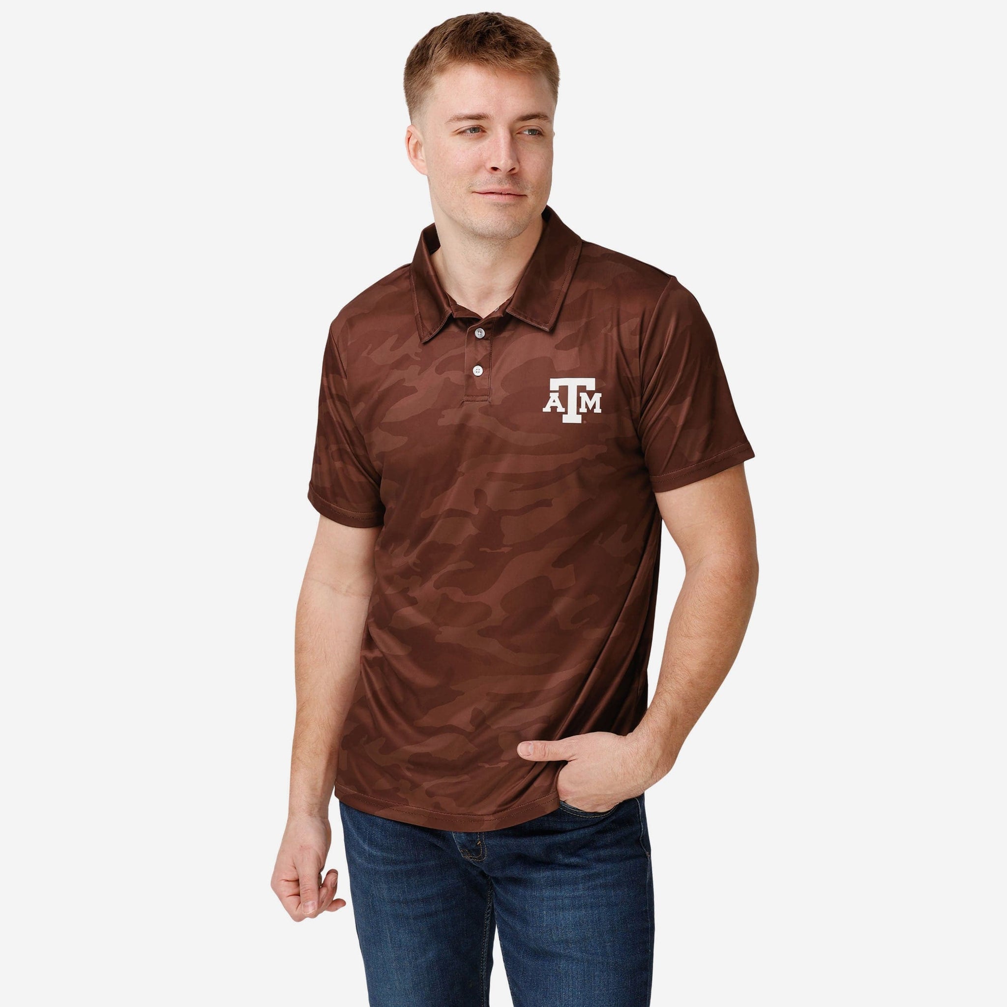 We're not talking about those phony baloney fake fans that still call it "sportsball." True fans like you simply can't hide your team pride. Not even with some camouflage. When you rock this Texas A&M Aggies Color Camo Polyester Polo, you'll see what we mean.