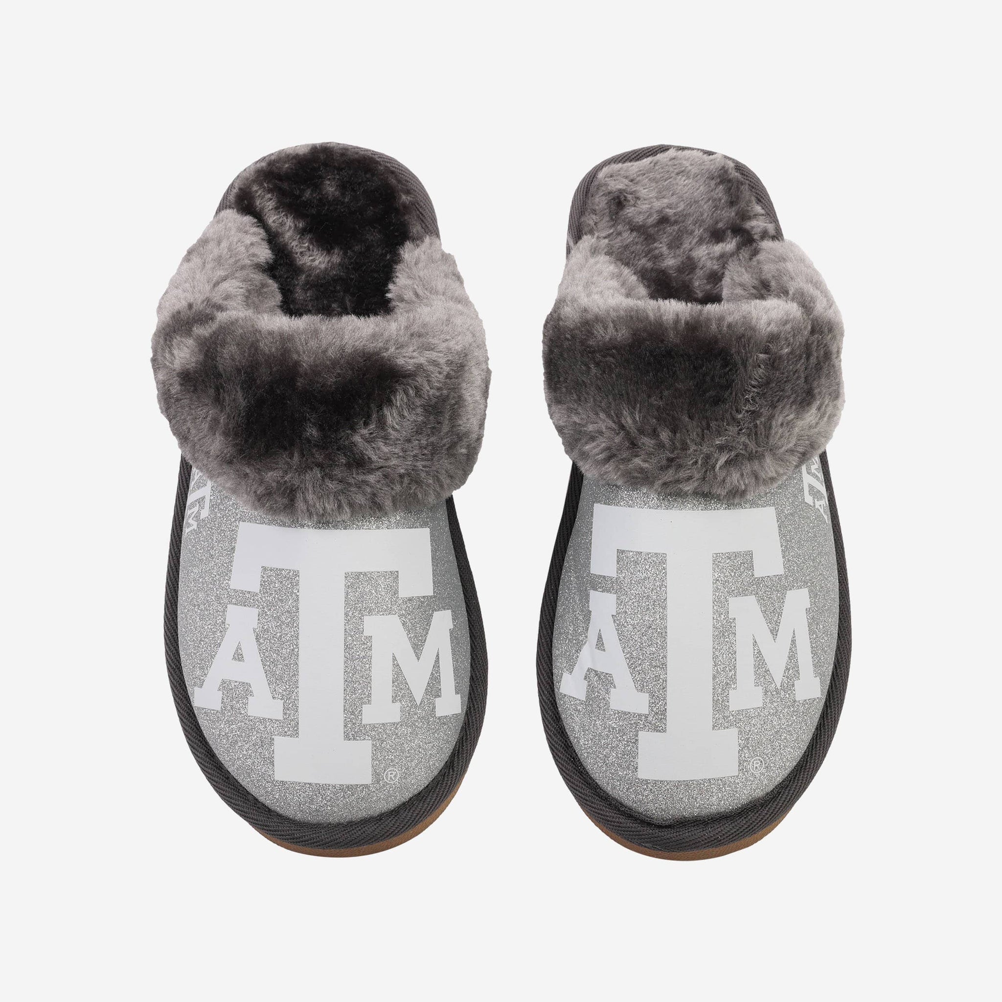 Texas A&M Aggies Womens Glitter Open Back Fur Moccasin Slipper